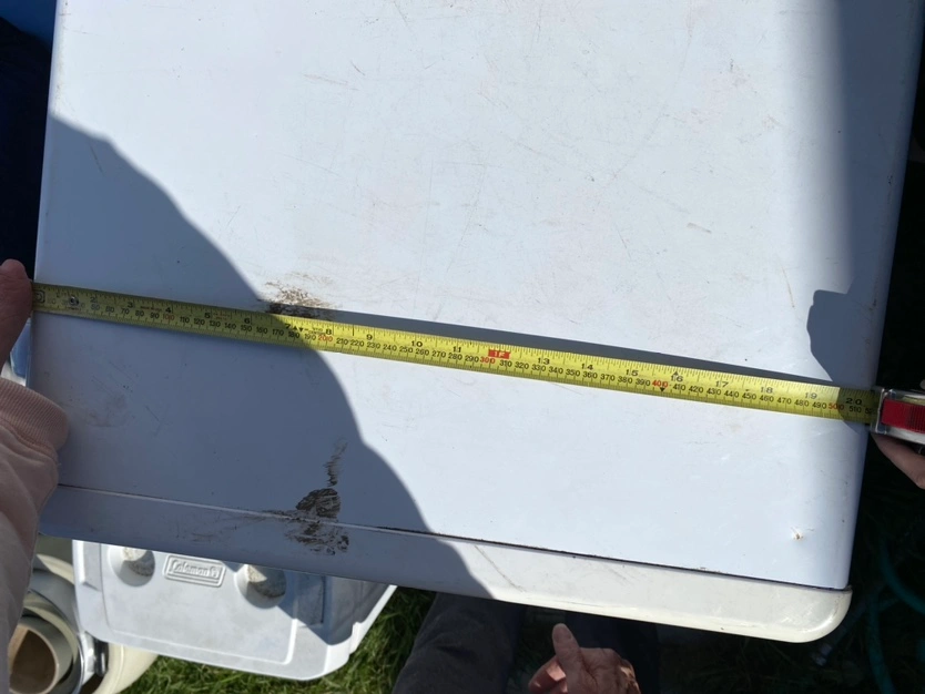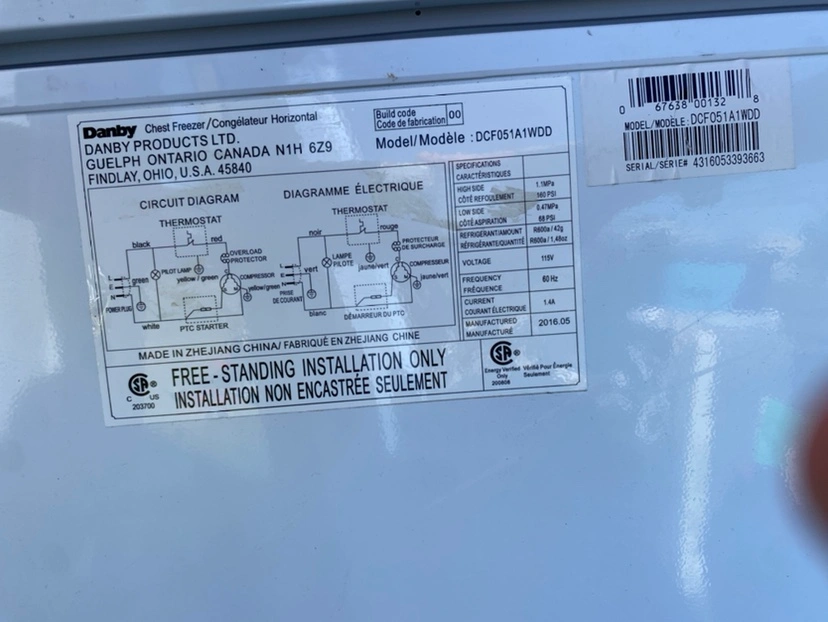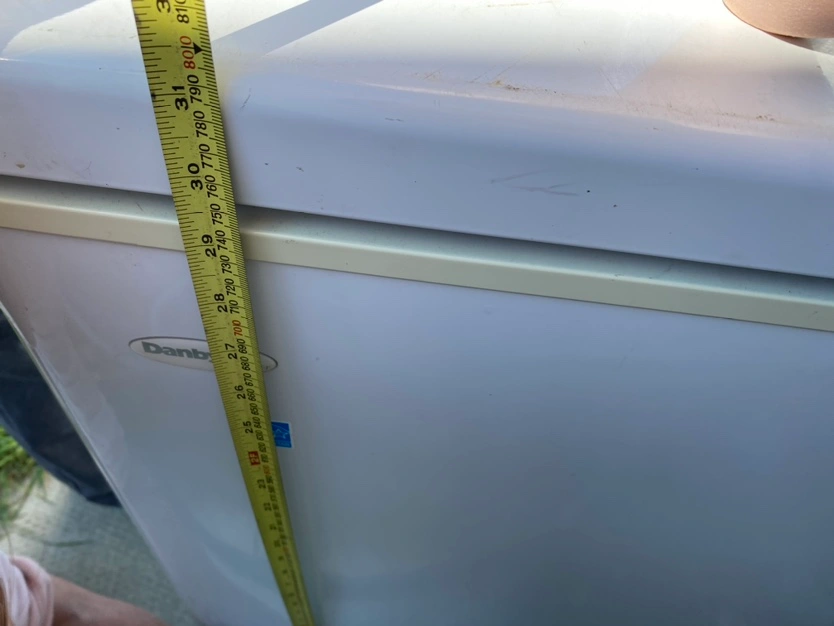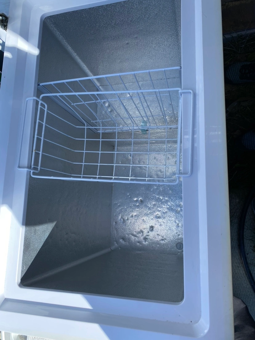 A white Danby chest freezer. Measurements in photos. A little grubby on the outside as it’s been working in a shop but works like a charm.