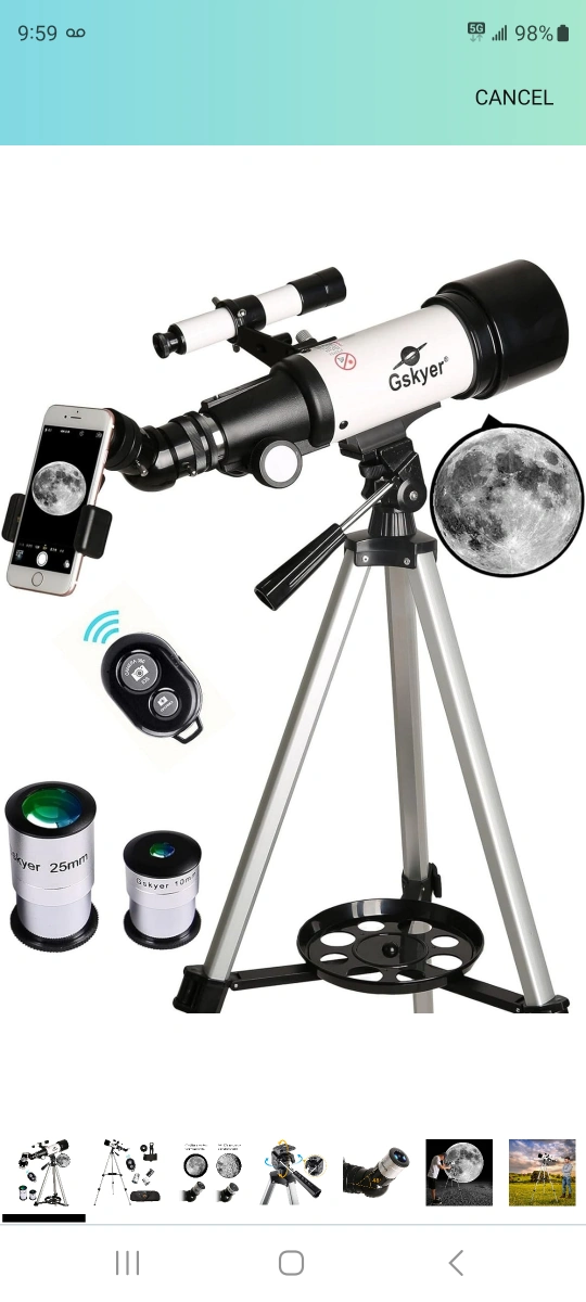 Adjustable Tripod: This telescope allows for many different viewing positions with a adjustable aluminum alloy tripod and carry bag make it easy to set up and transport the telescope to different locationTelescope comes with a tripod, phone holder, remote, and two eyepieces.