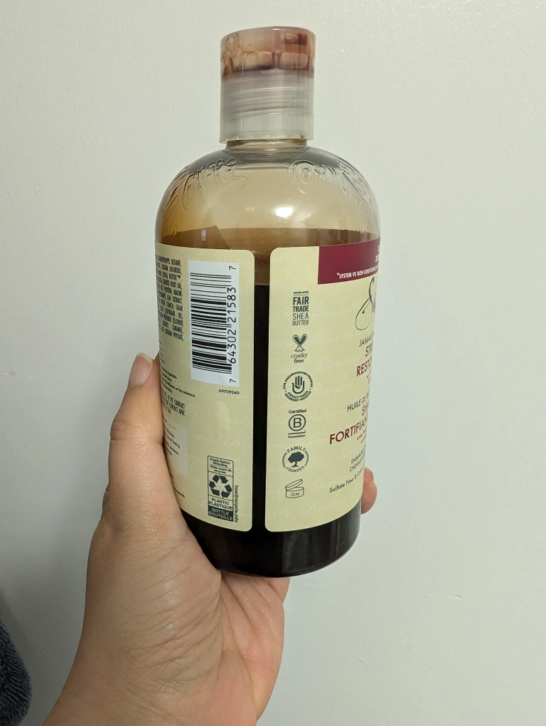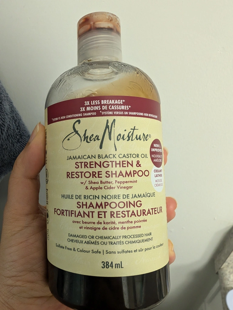 384 mL bottle of Shea Moisture Jamaican Black Castor Oil Strengthen and Restore Shampoo.