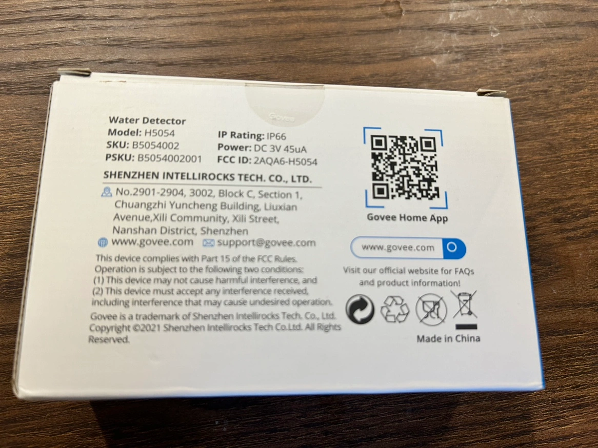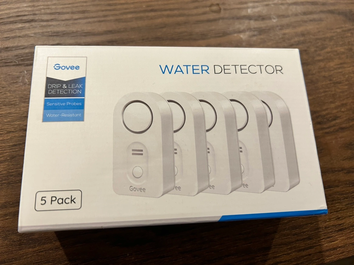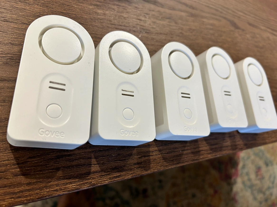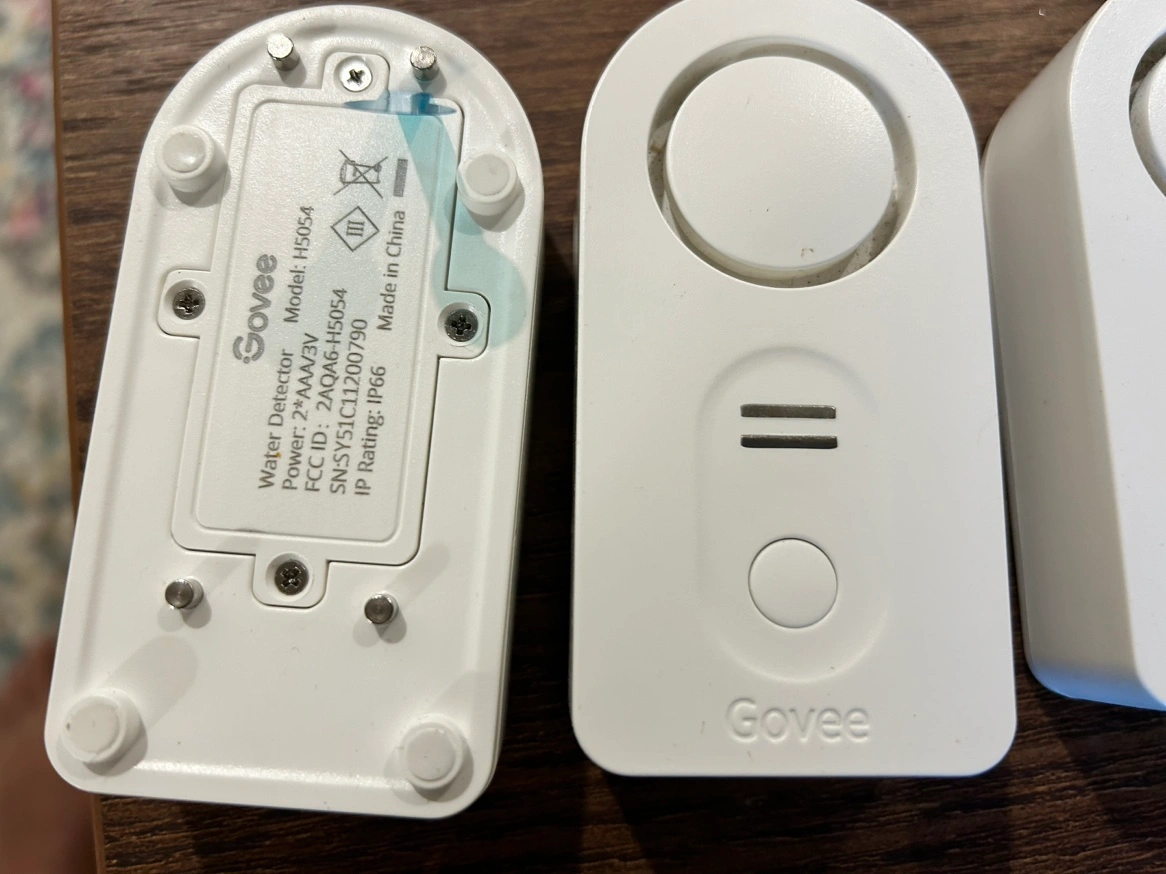Set of 5 Govee water leak detectors. Some of the detectors need new batteries.