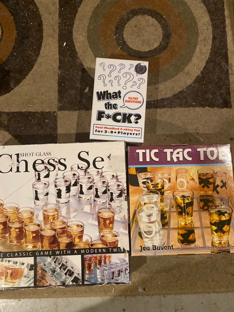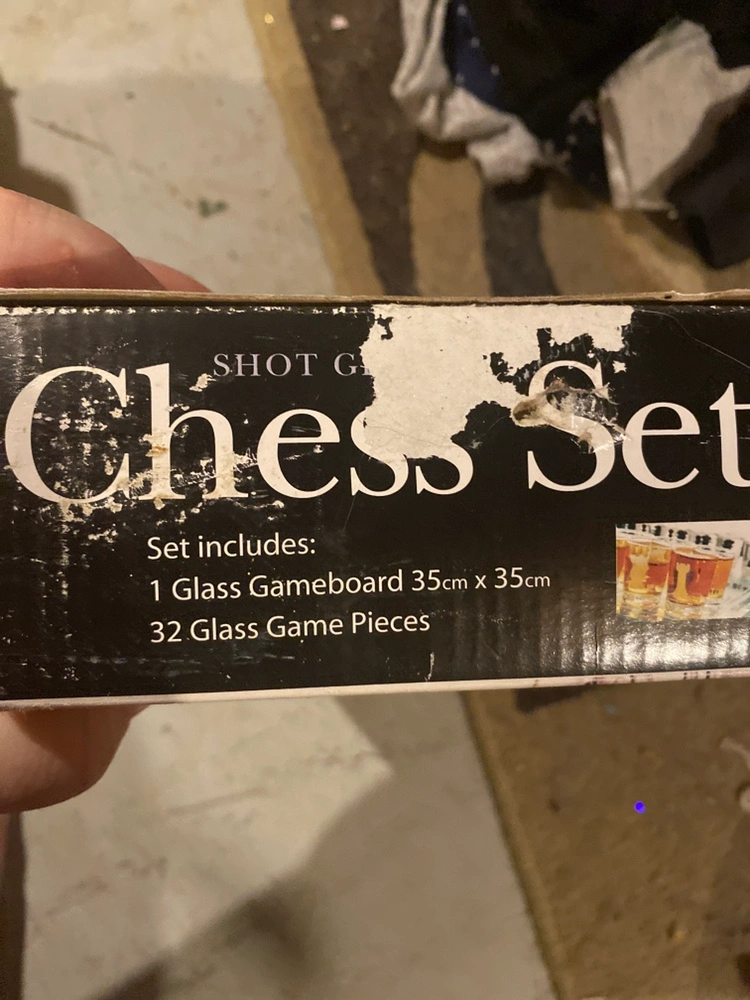 A classic game with a modern twist. Includes 32 glass game pieces and a glass gameboard. The pieces are also shot glasses!