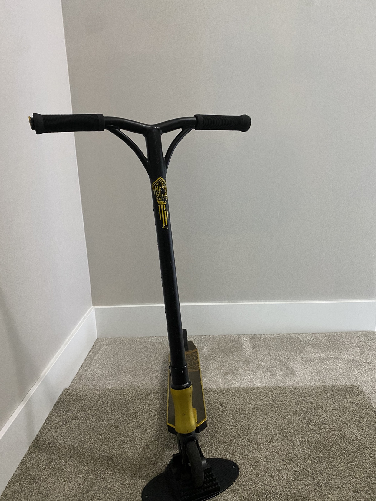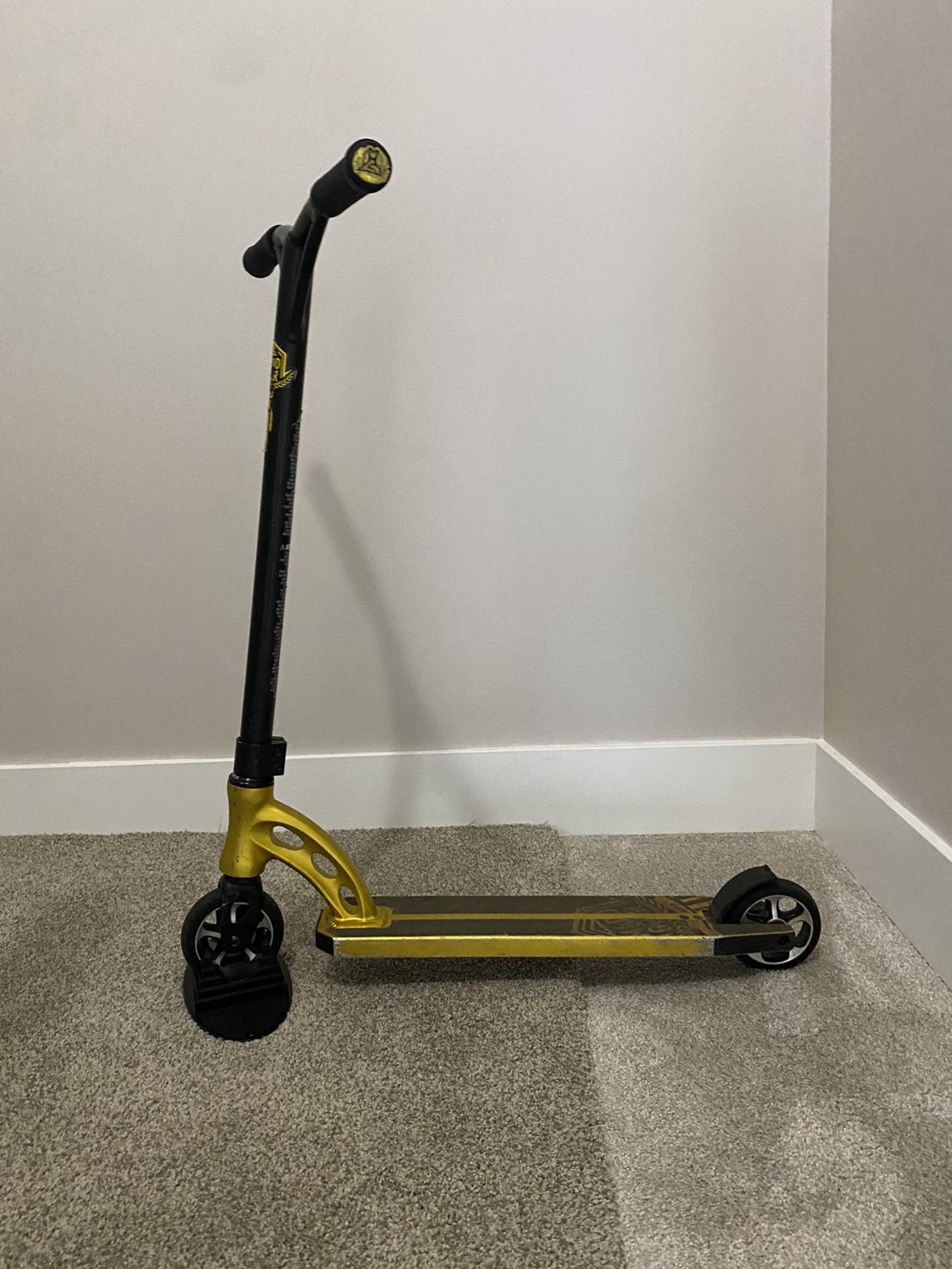 1 / 41 / 4Buy & SellBlack and Gold Stunt ScooterBlack and Gold Stunt Scooter$30Great scooter for tricks and travailing, for kids and teens. Unfortunately a bit beat up on the tires.WHERE TO MEETNewport villageView MapSELLERKarlMoody Centre240 reviews1 chats·0 favorites·51 viewsSEND CHAT TO SELLERHi Karl! I’m interested in your listing.Hi Karl! I’m interested in your listing.Get the Karrot app to chatSign In to chat