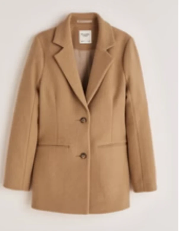 Camel brown blazer coat from A&F. It has a classic fit and is made of a soft, warm wool blend. The coat is in great condition.
