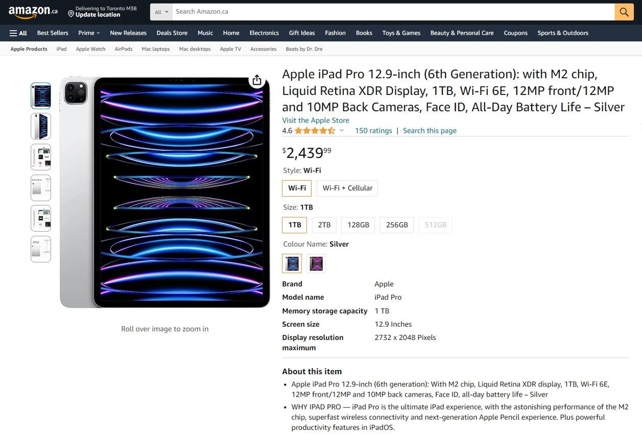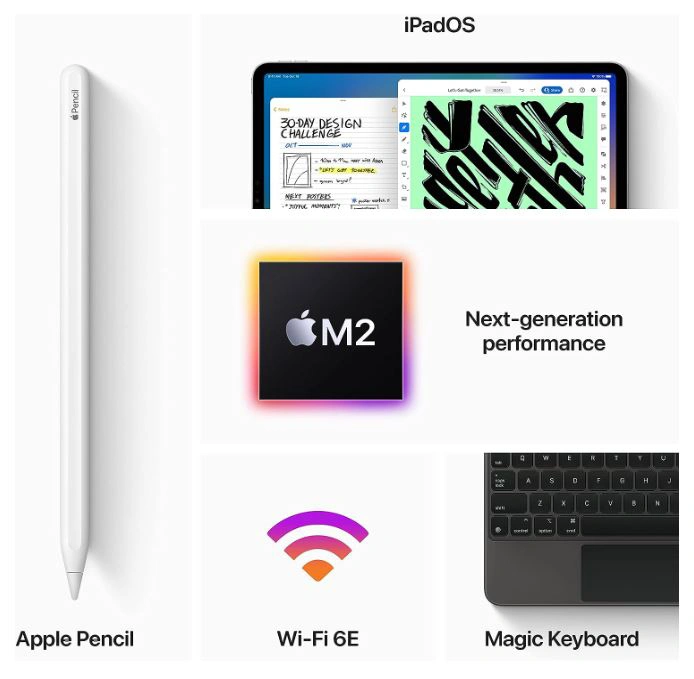 Apple iPad Pro 12.9-inch (6th Gen, Silver, 1TB, All-Day Battery Life).
