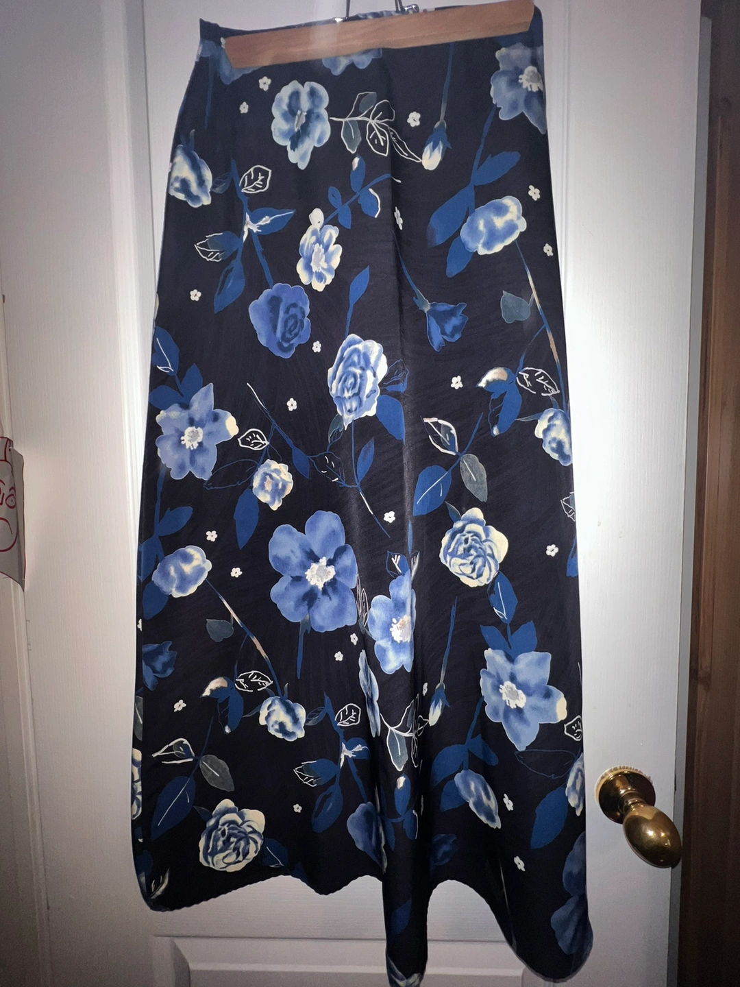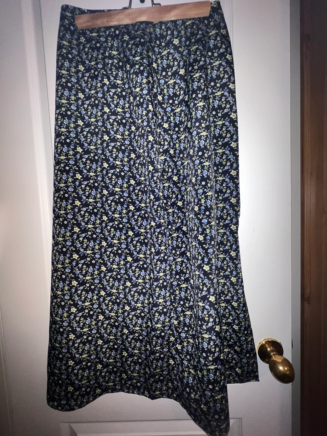Photo 5-6: EVIDENCE navy with white floral pattern maxi skirt 7