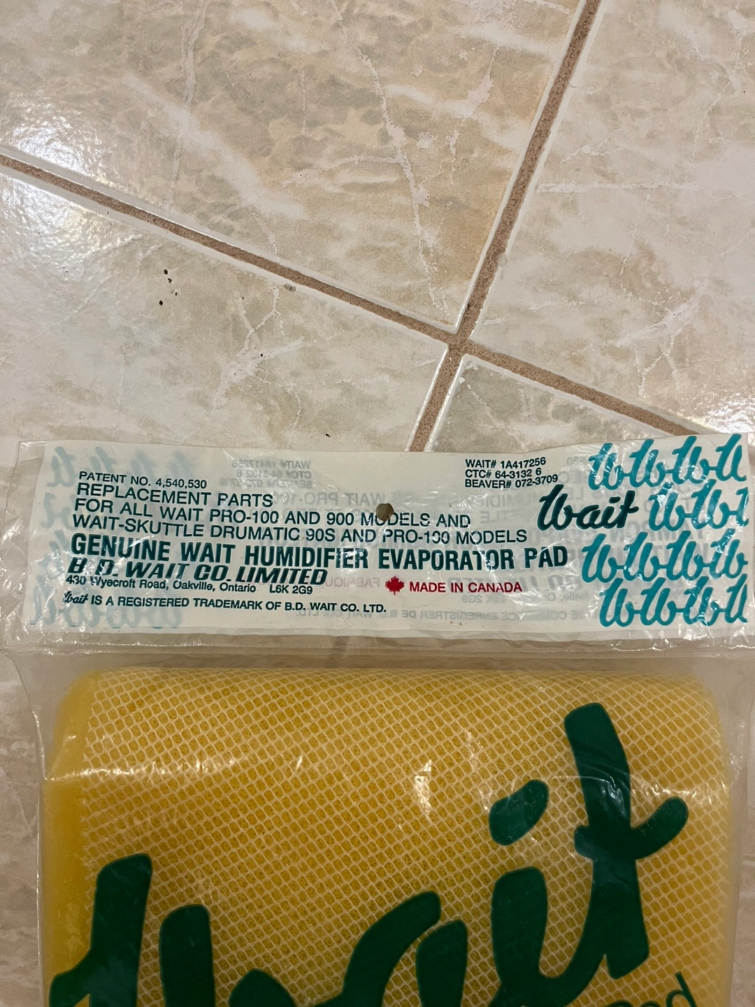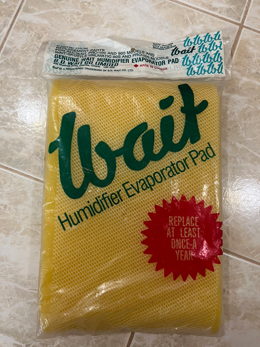 Genuine Wait humidifier evaporator pad for Wait Pro-100 and 900 models. Reason to sell is I just replaced my humidifier. This one was never used. Please message me if you like more information.