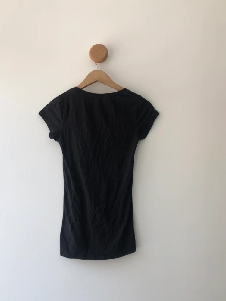 One of a kind silkscreen printed top by me. It's on a fitted black scoop neck stretch tee with a print along the hem. Great to wear as is simply, or can be worn as a simple black tee tucked inside of your pants.