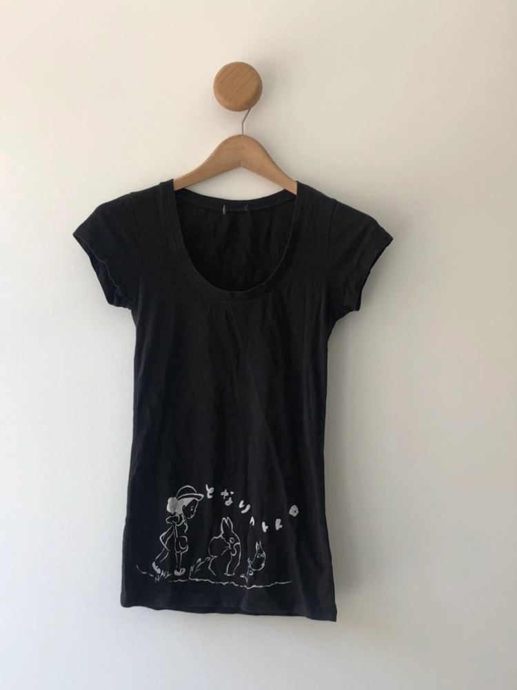 #spring #fall #autumn #winter #closet #wardrobe #casual #japan #studio #ghibli #simple #modern #contemporary #comfort #comfortable #cute #kawaii #scoop #neck #tee #tshirt #shirt #black #print #screenprint #silkscreen #anime #manga
