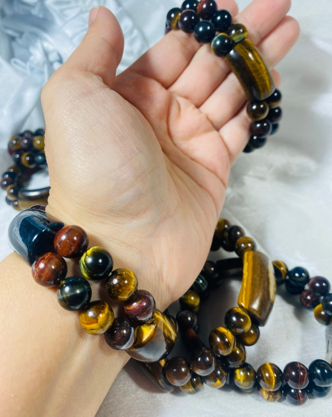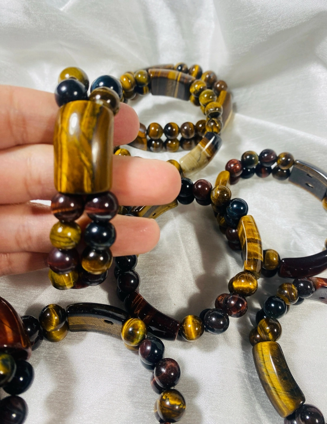 $80 each ! Beautiful natural tigereye gemstones bracelet available! It’s has multi colours of tigereye ! And they are yellow tigereye bracelets available! It’s made with elastic to adjust any wrist ! Feel free to send me a chat for more information!🫶