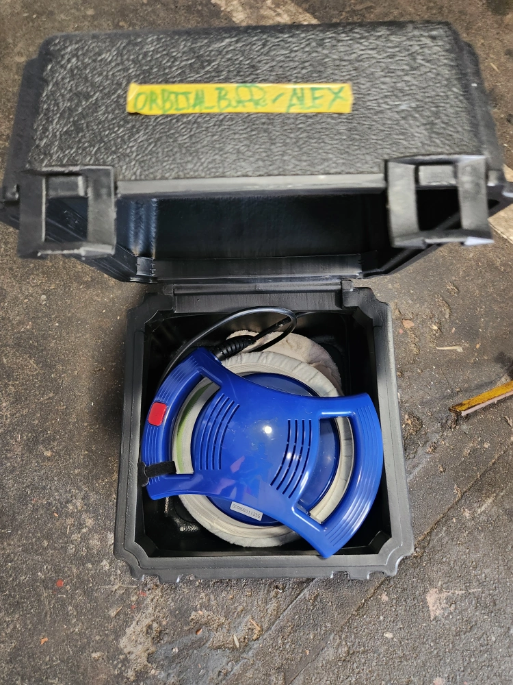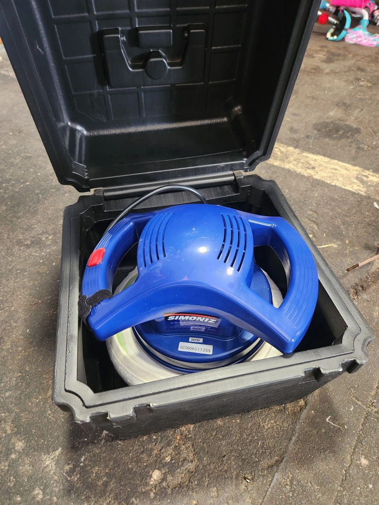 This is a Simoniz 6” random orbit polisher. Includes a carrying case and 3 different sized pads.