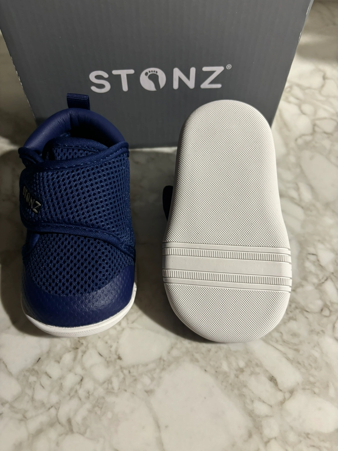 Size 5 (12-18 months) baby shoes in a navy blue colour.