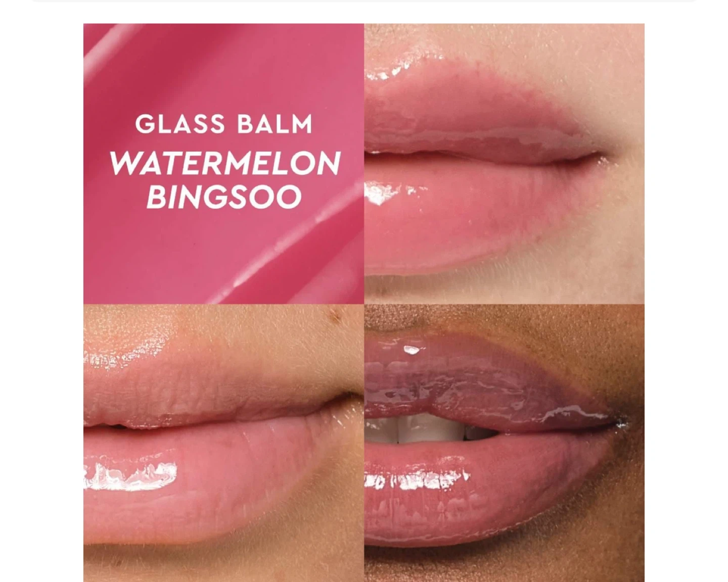 Hydrating Glow Recipe Glass Balm Lip Treatment in Watermelon Bingsu. This lip treatment gives a sheer soft pink tint and glass-like glow. Has 12 hours of hydration and a fruity flavor. Allure Best of Beauty 2025 winner!