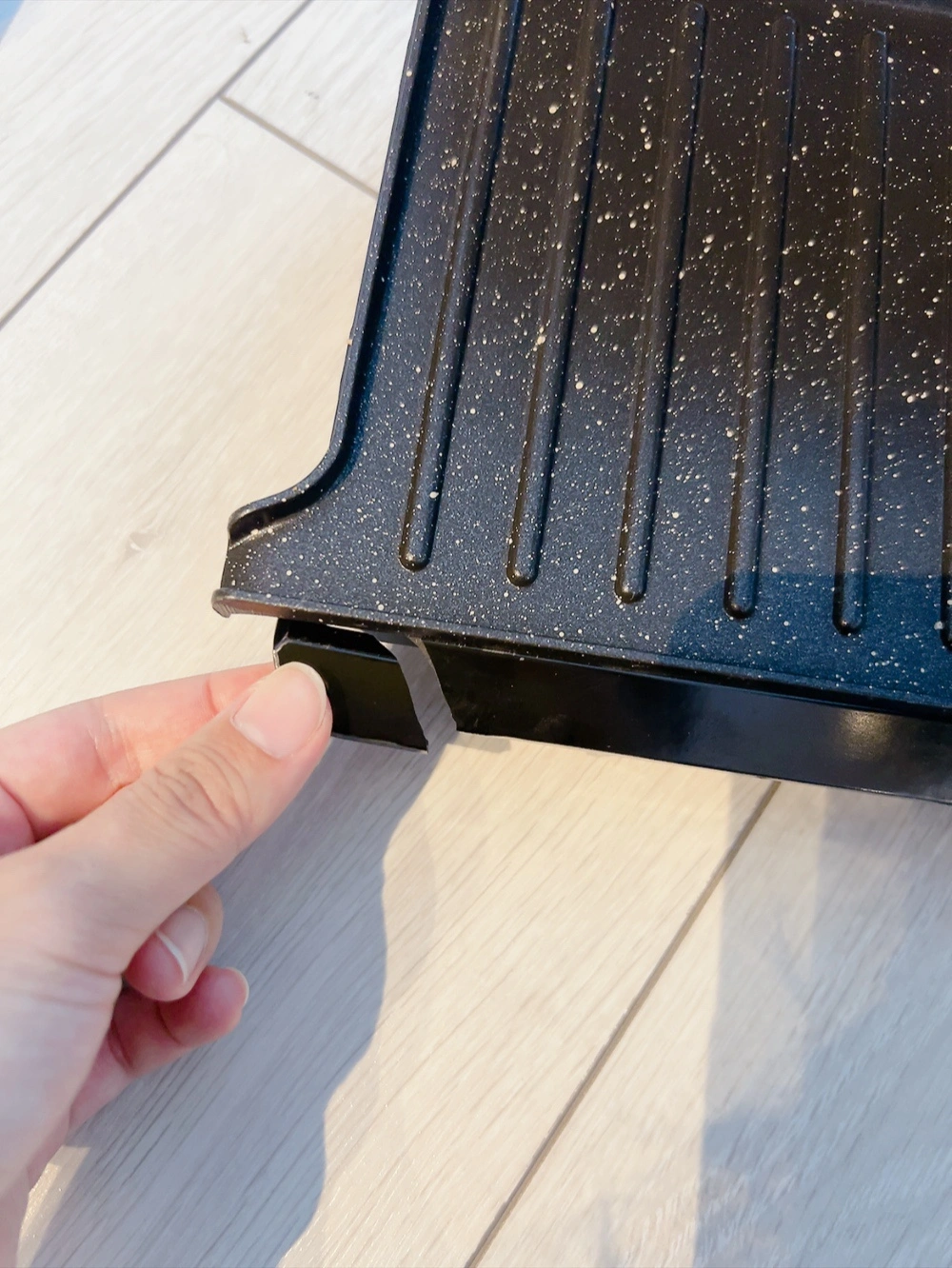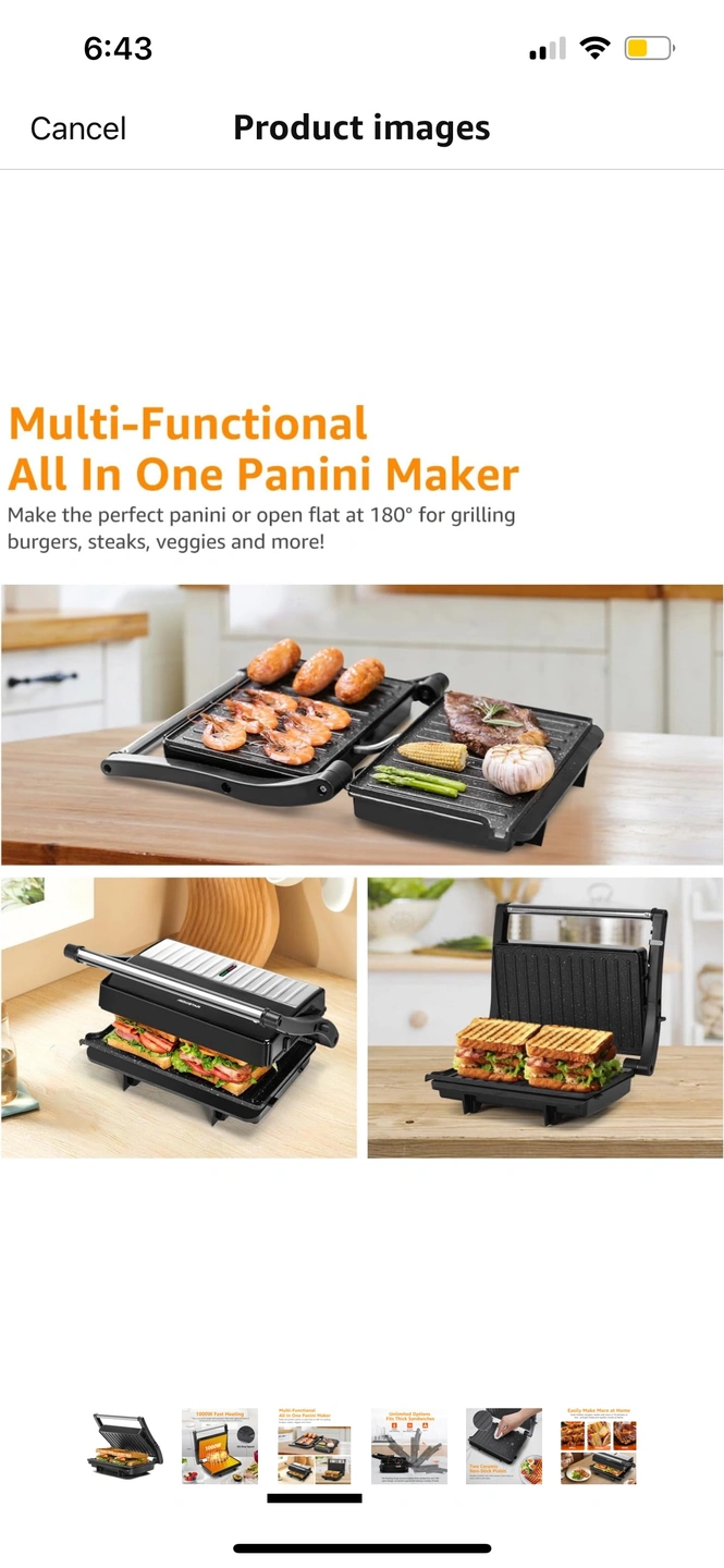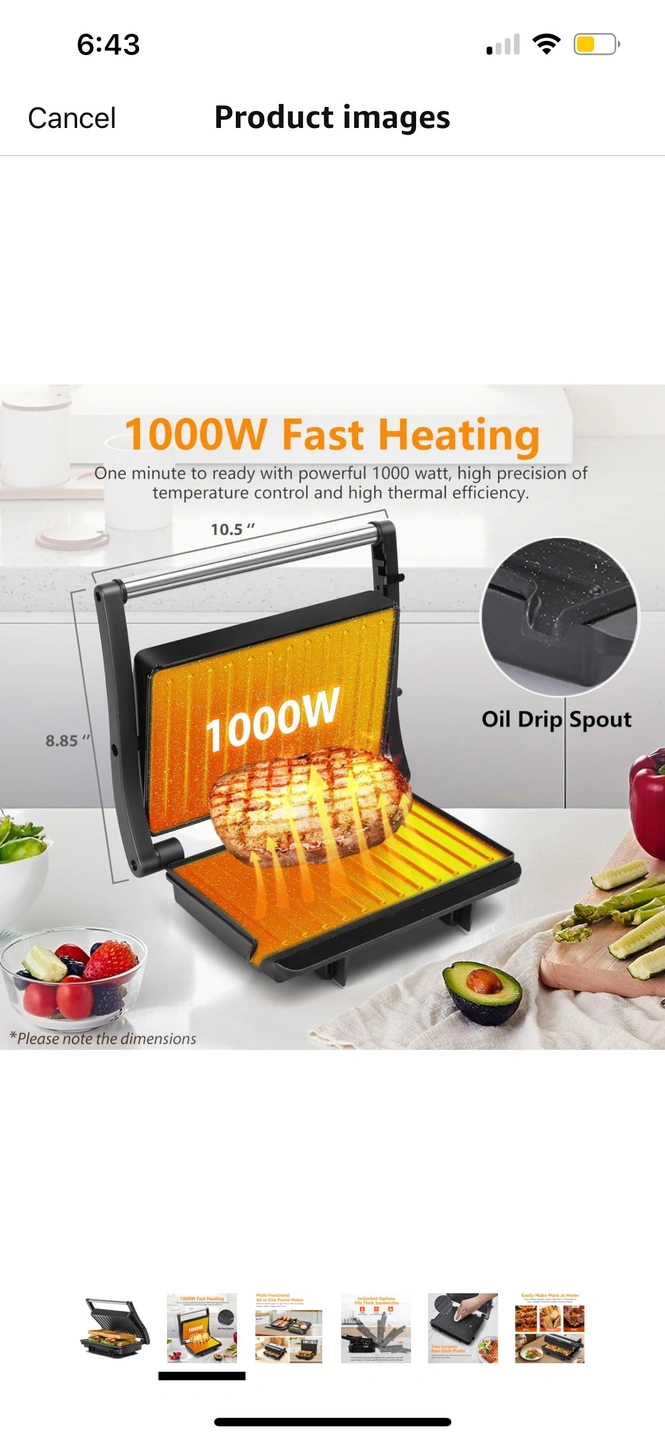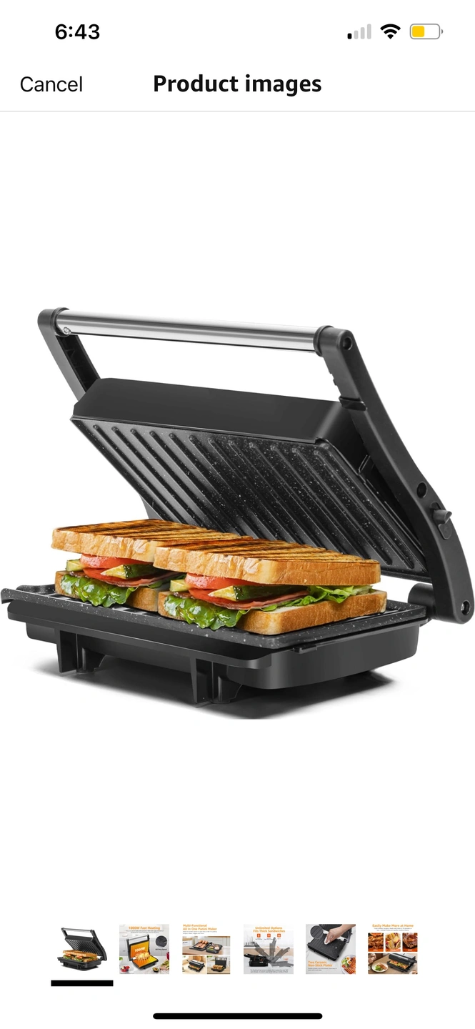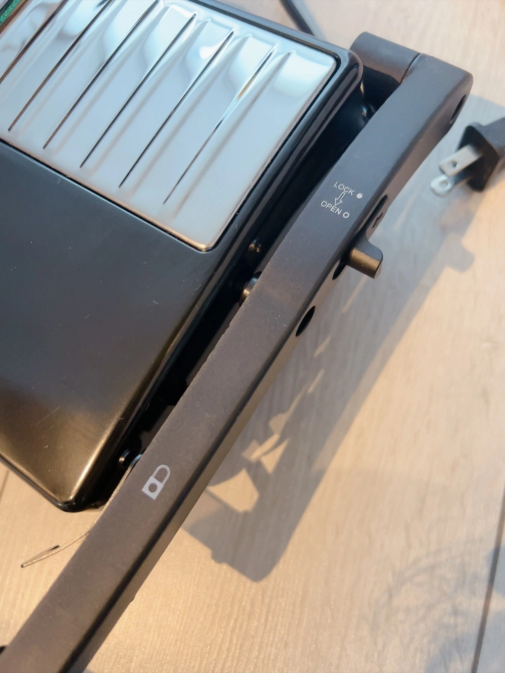 Never used but hit somewhere, the left bottom side plastic part is broken It doesn’t affect for grilling, Still working perfectly ! Panini Press Grill, Sandwich Maker with Double Non-stick Plates, Opens 180 Degrees with Floating Hinge for Any Size Food, Indicator Lights, 3-in-1 Electric Indoor Grill by Aigostar Amazon link https://a.co/d/2KYWdSW