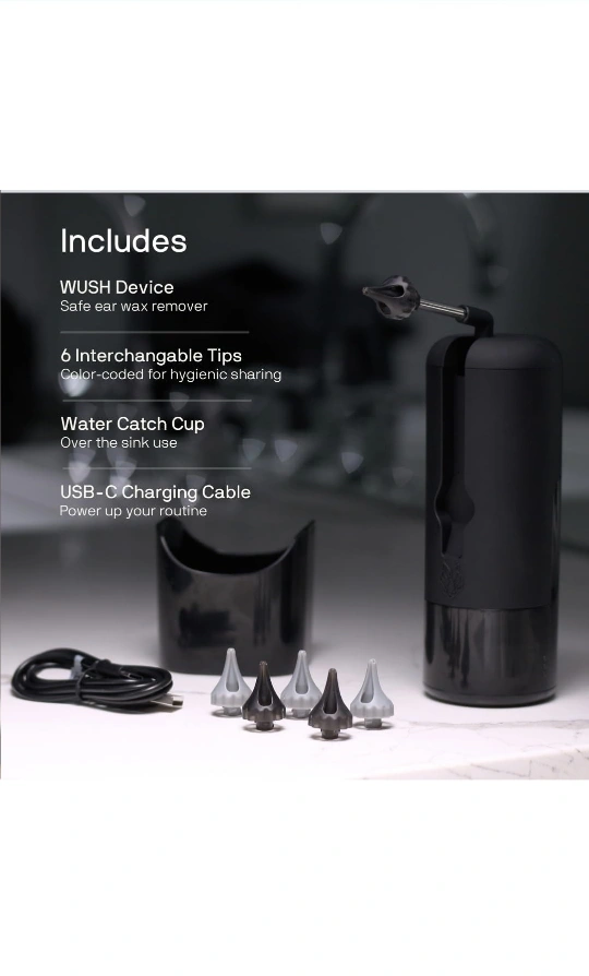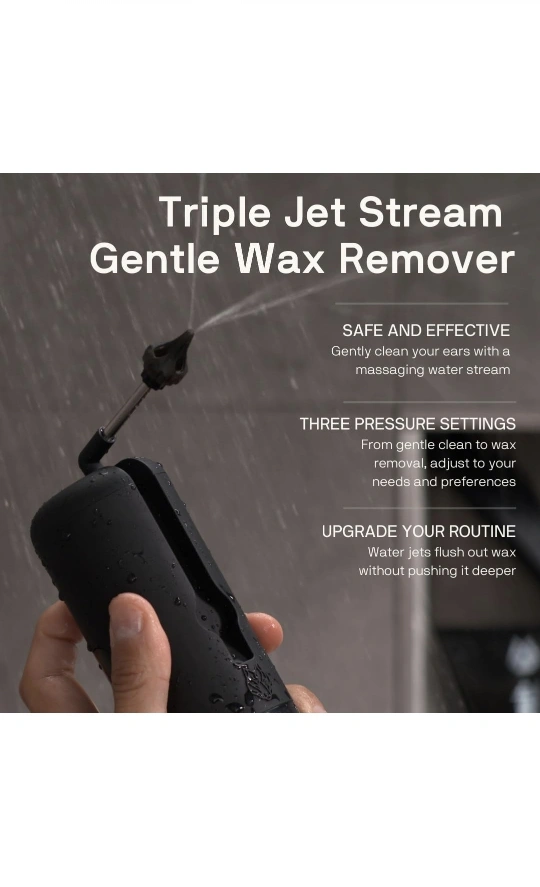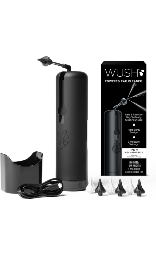 New Wush Pro By Black Wolf- Deluxe Water Powered Ear Cleaner- Safe & Effective- Electric Triple Jet Stream 3 Pressure Settings For Ear Wax Buildup- Ear Wax Removal Kit- Water Resistant USB Rechargeable