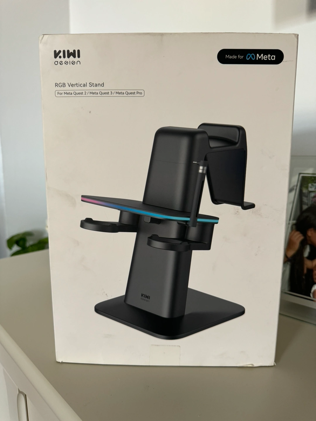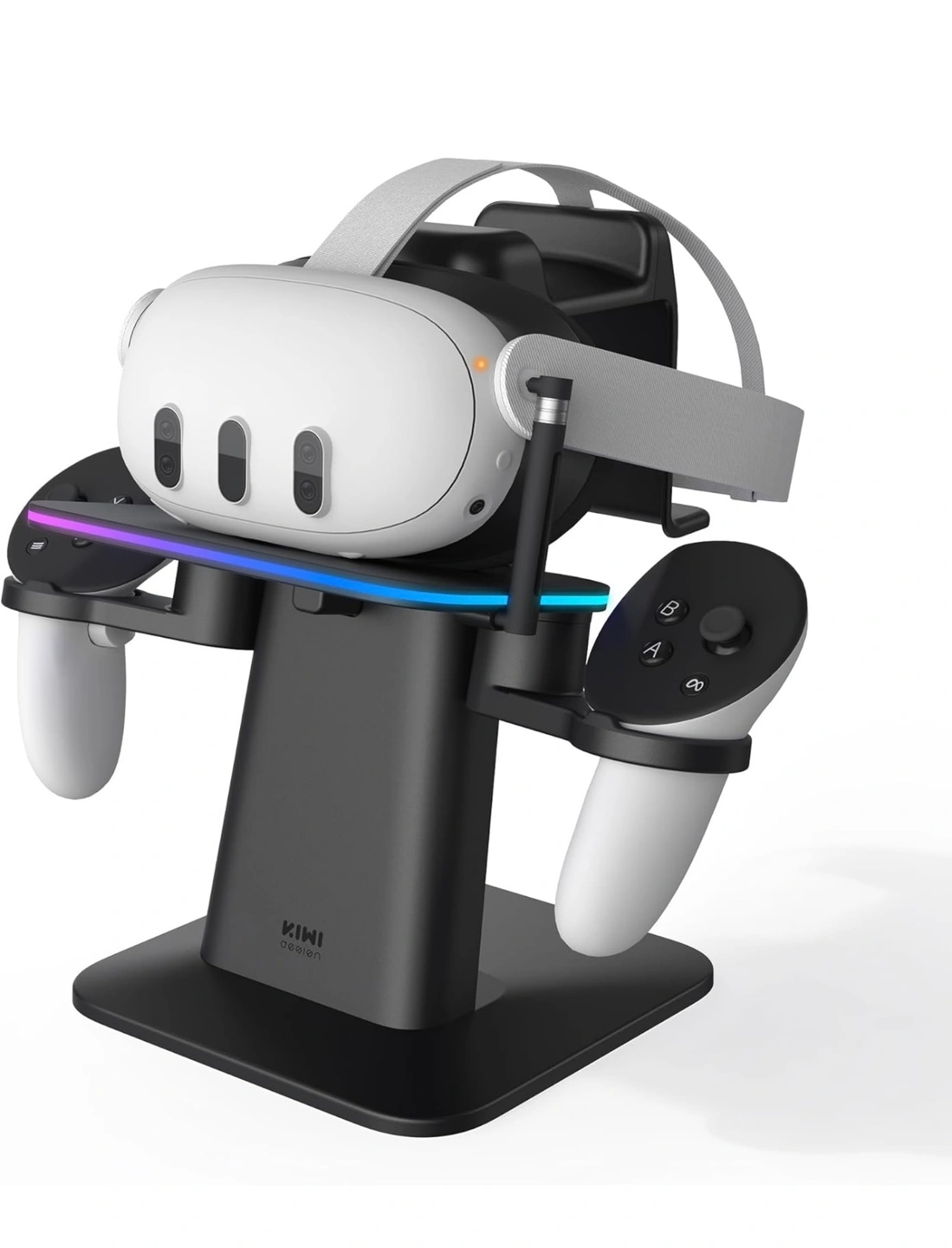 A charging stand for your Meta Quest 2, 3 or Pro headset with RGB lighting Strap Compatible with Quest 3