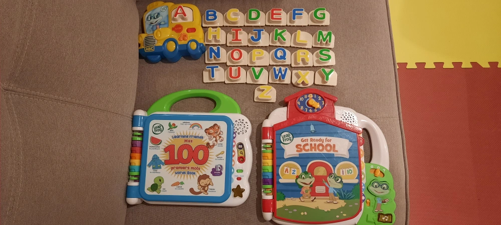 Excellent used condition. 3 Leap Frog preschool educational toys/books. Interactive learning includes introduction to ABCs, numbers, colours and shapes.