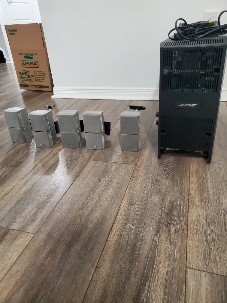 The system includes five cube speakers and an acoustimass module. The system is in excellent condition and ready to be enjoyed. This system is powerful and will make your movies and music sound incredible.