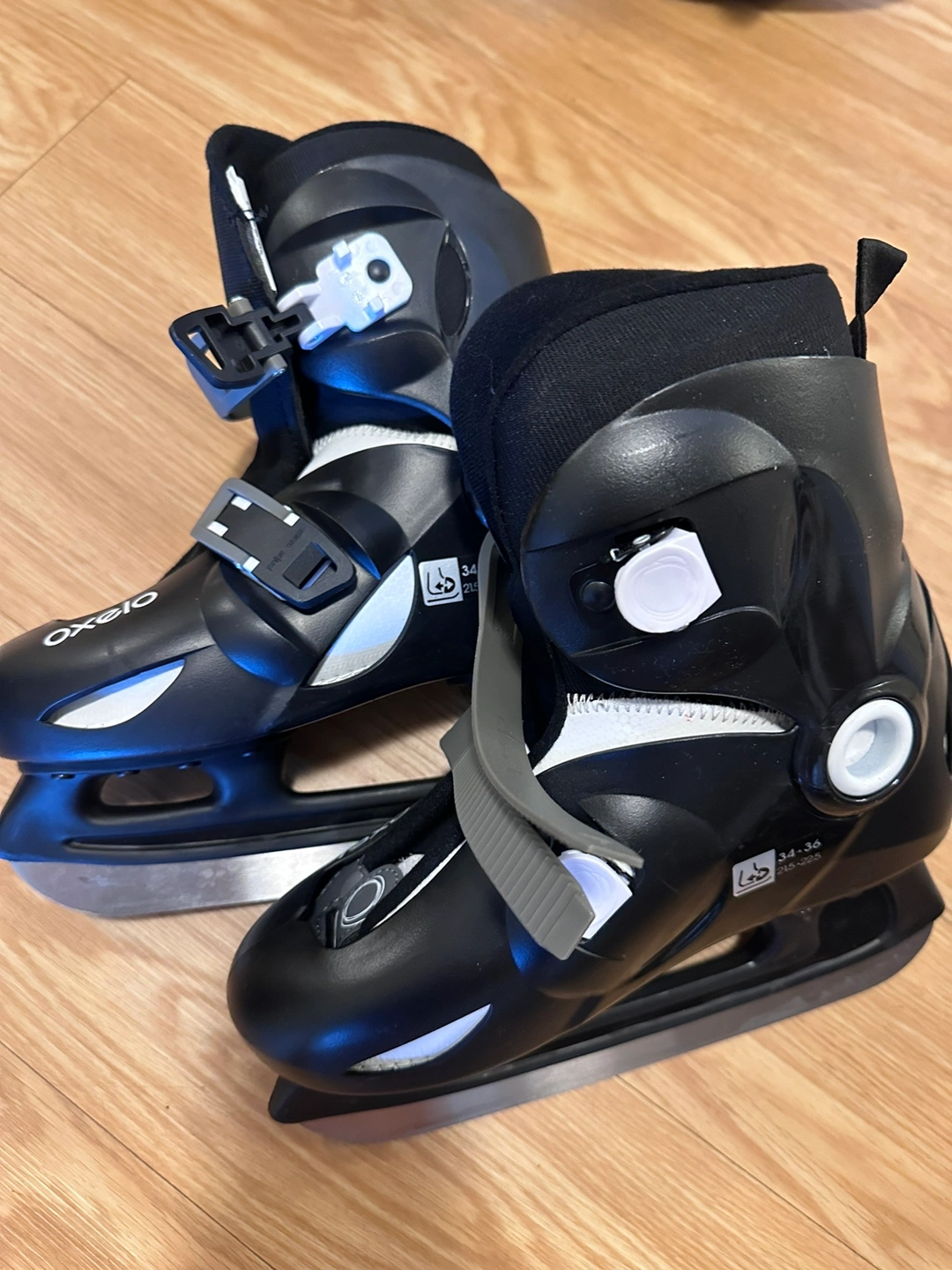 Black ice skates with adjustable straps. Like new. Used twice. Size as picture. I have 2 units of same skate.