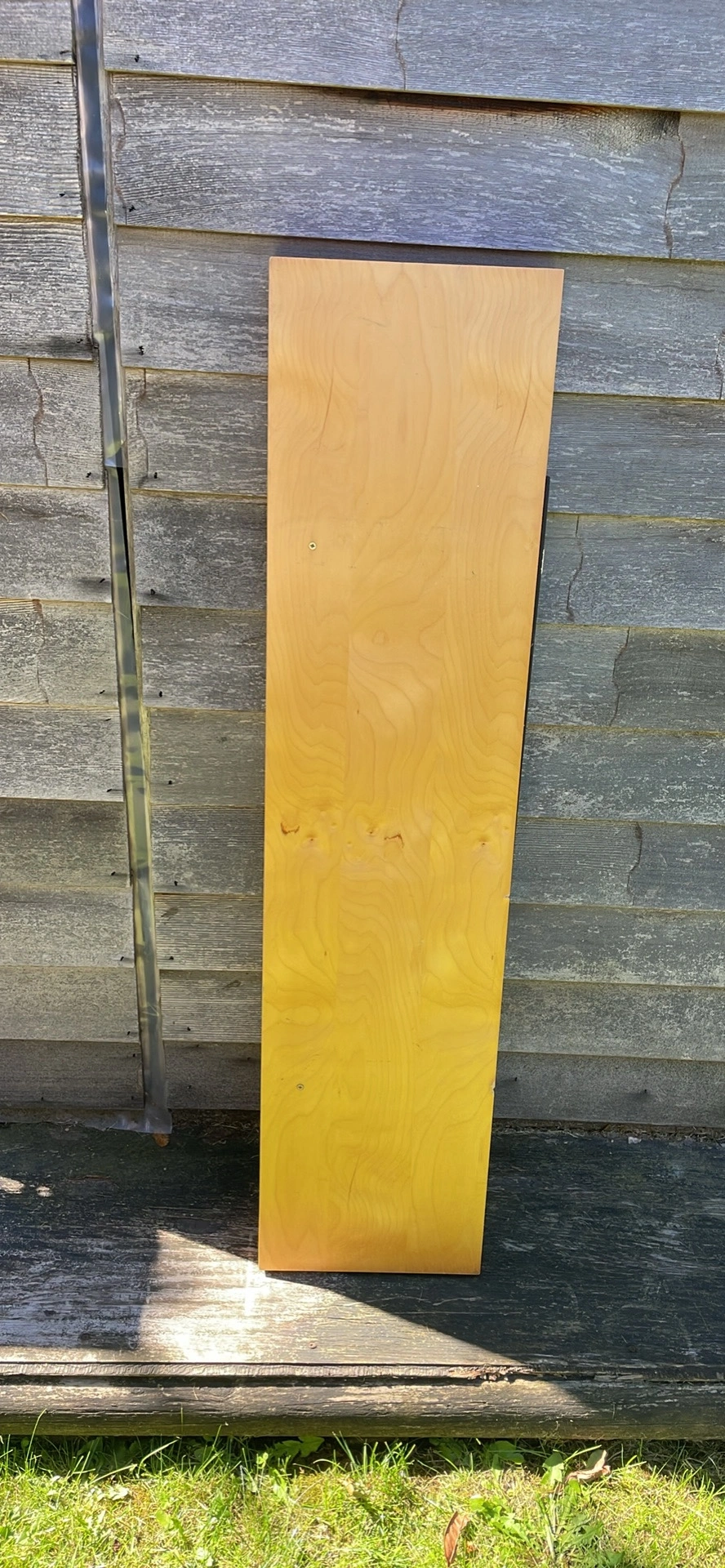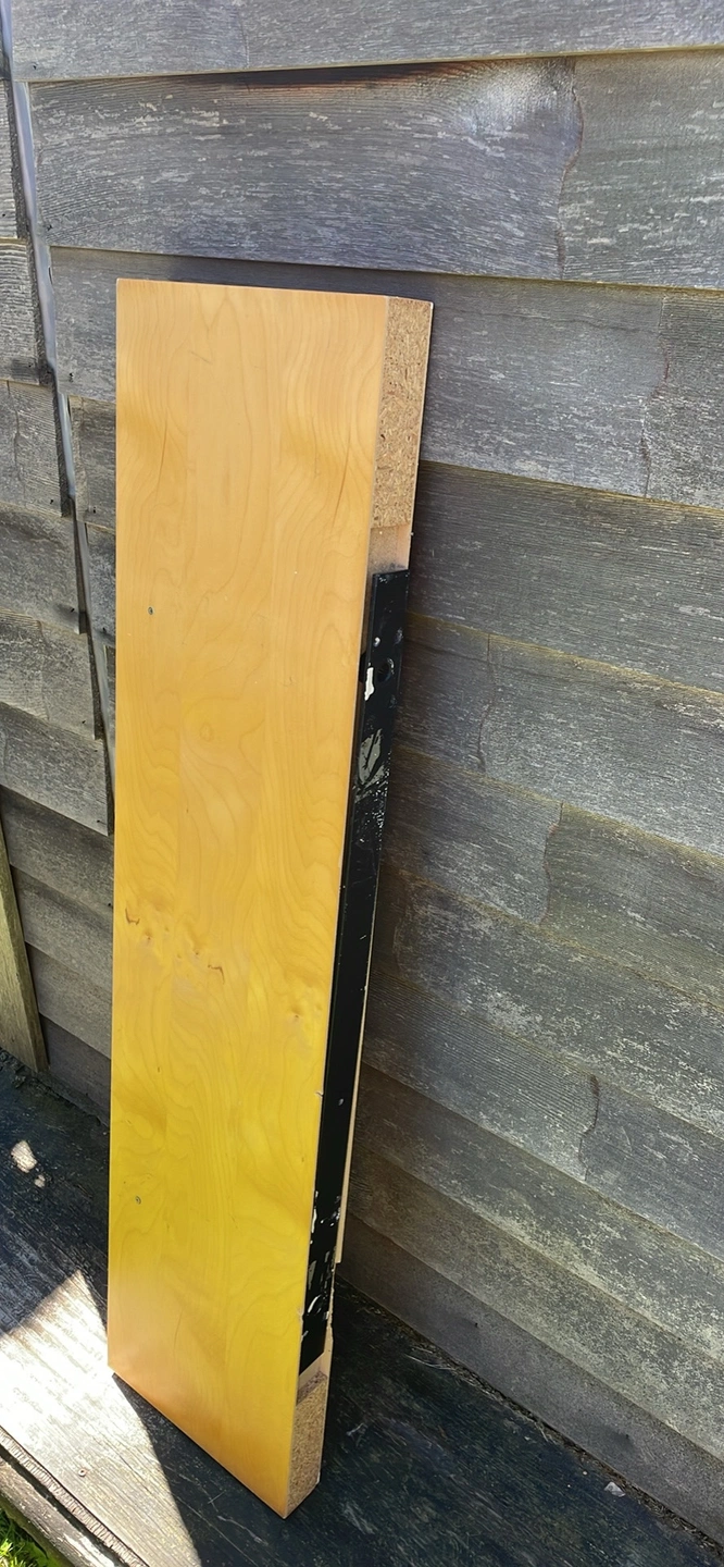 Wood shelf with steel wall mount included. Good shape. It has a little chip but not visible when mounted.