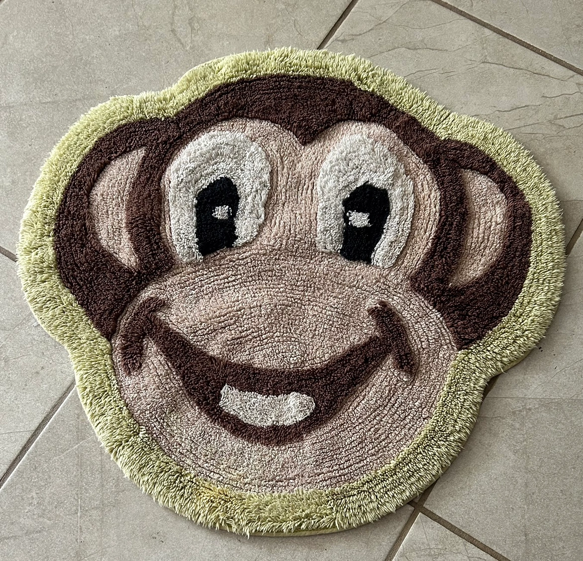 A cute monkey versatile rug. A great addition to a child's room. It is in good condition. I am decluttering and giving away anything I’m no longer have use for. Hoping to find place in a home with children.