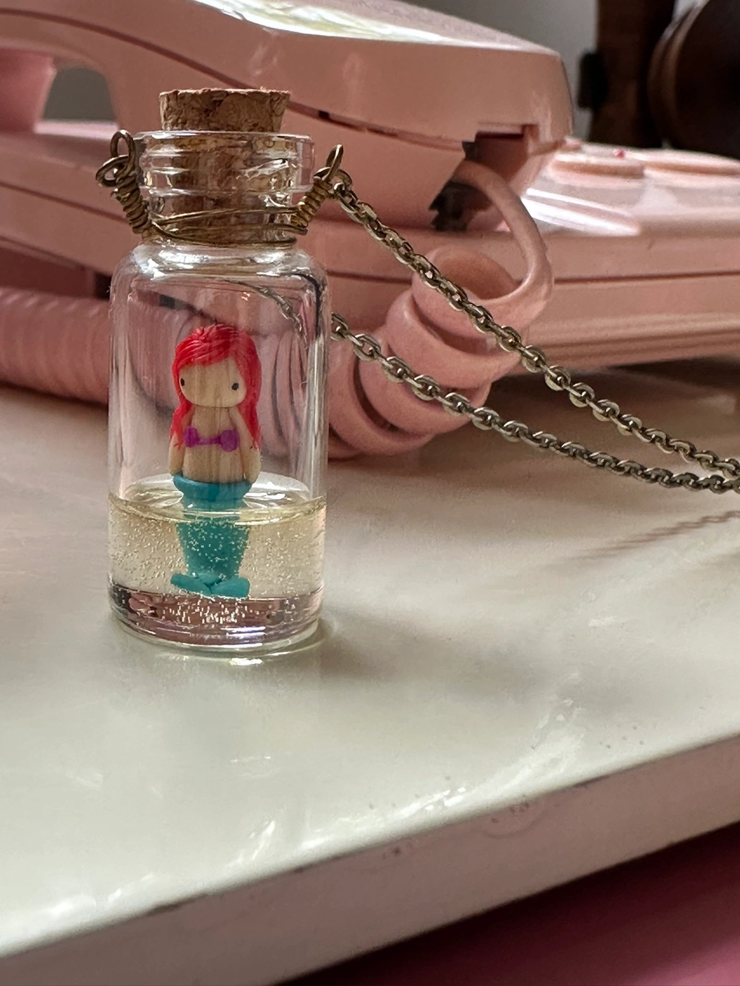 Mermaid In A Jar Handmade Necklace Artisan Clay Resin Cute