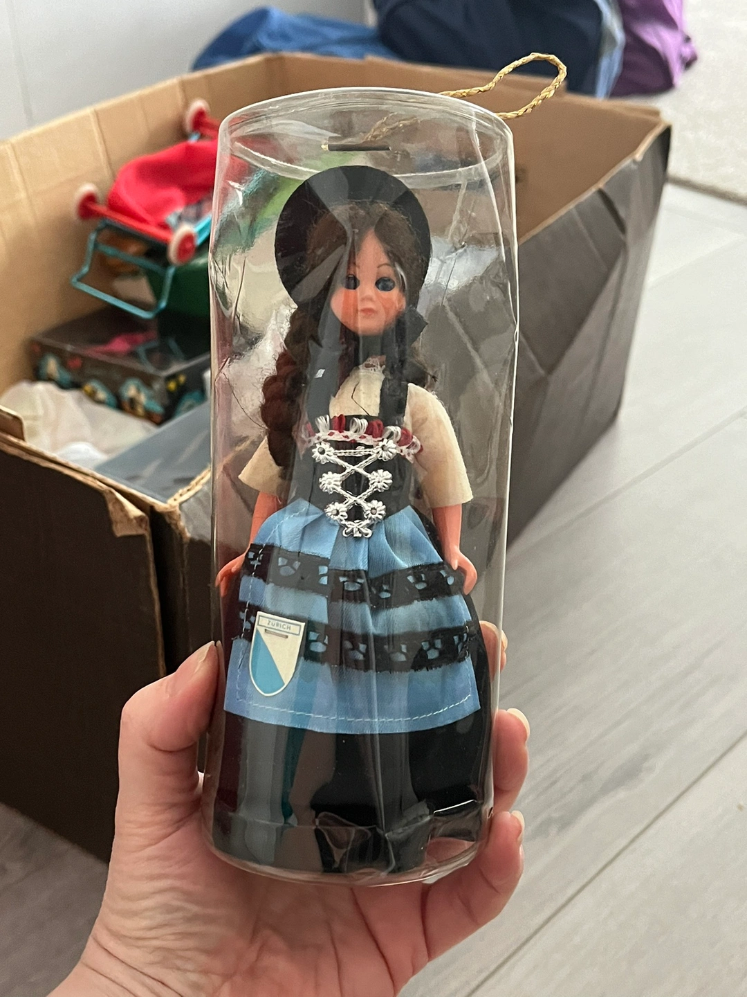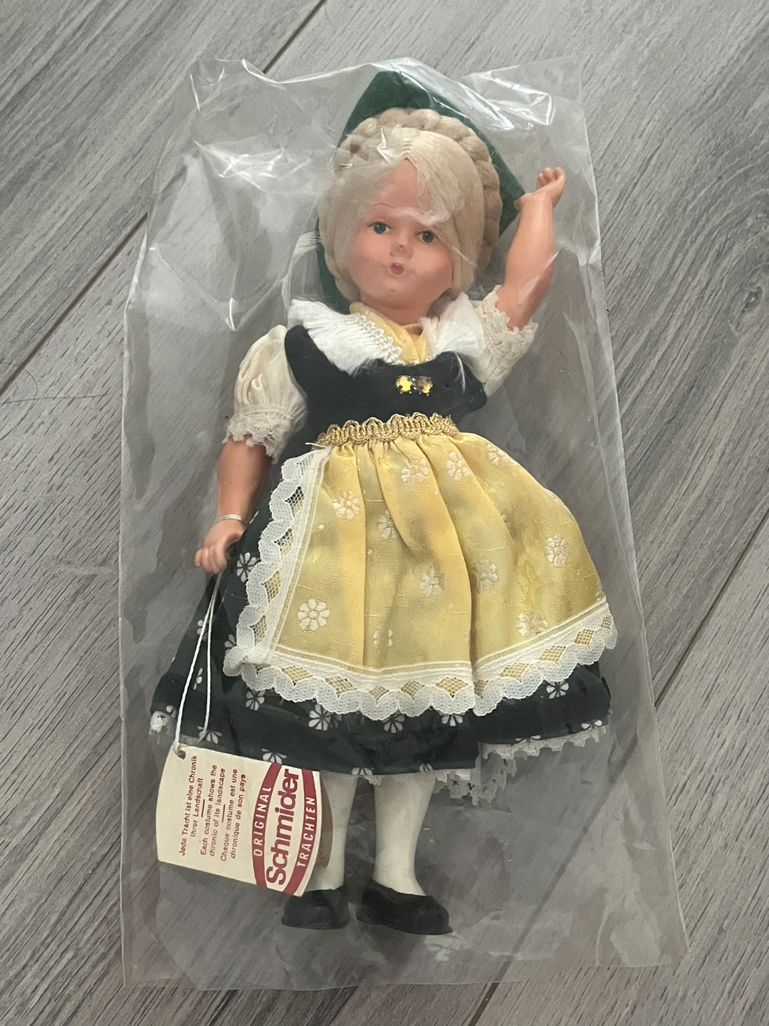 Vintage Dolls from around the world, some included are Schmid Trachten dolls representing Belgium, Berchtesgaden, and Lachfen. All dolls come in their original packaging and are in great condition.