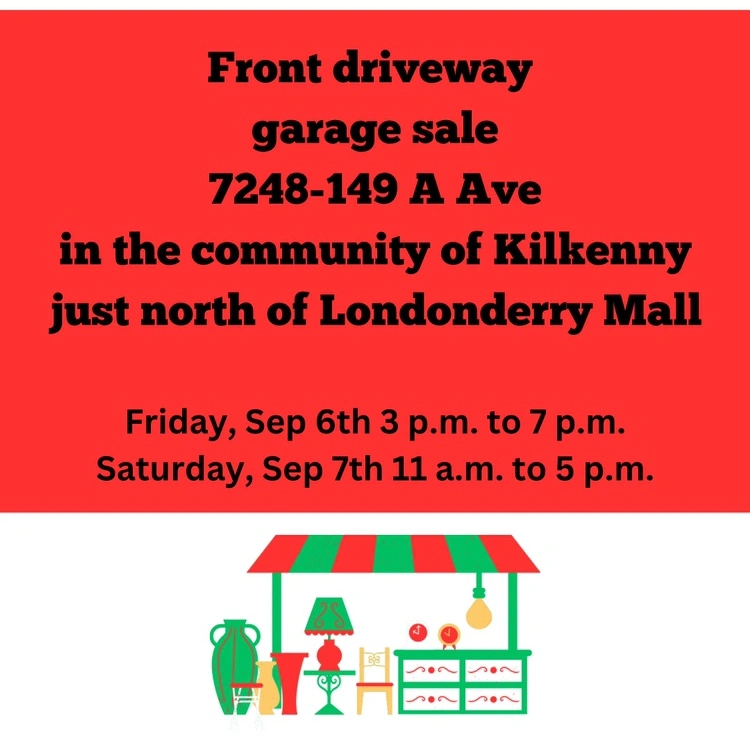Front driveway garage sale - 7248-149 A Ave in Kilkenny.