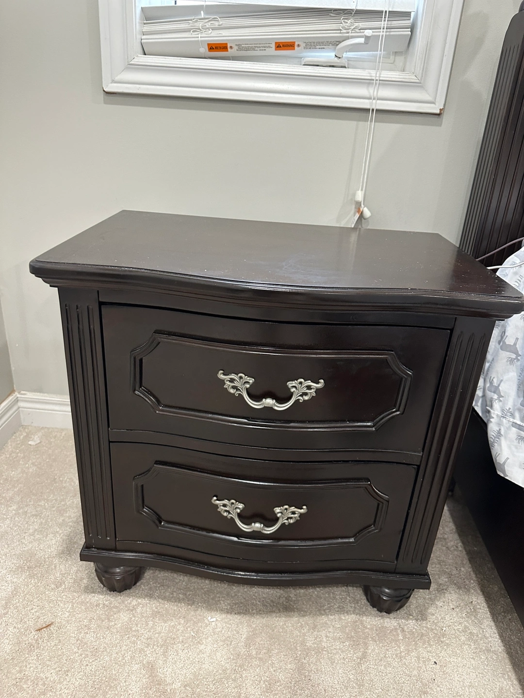 Dark Wood Nightstand- and lamps $20