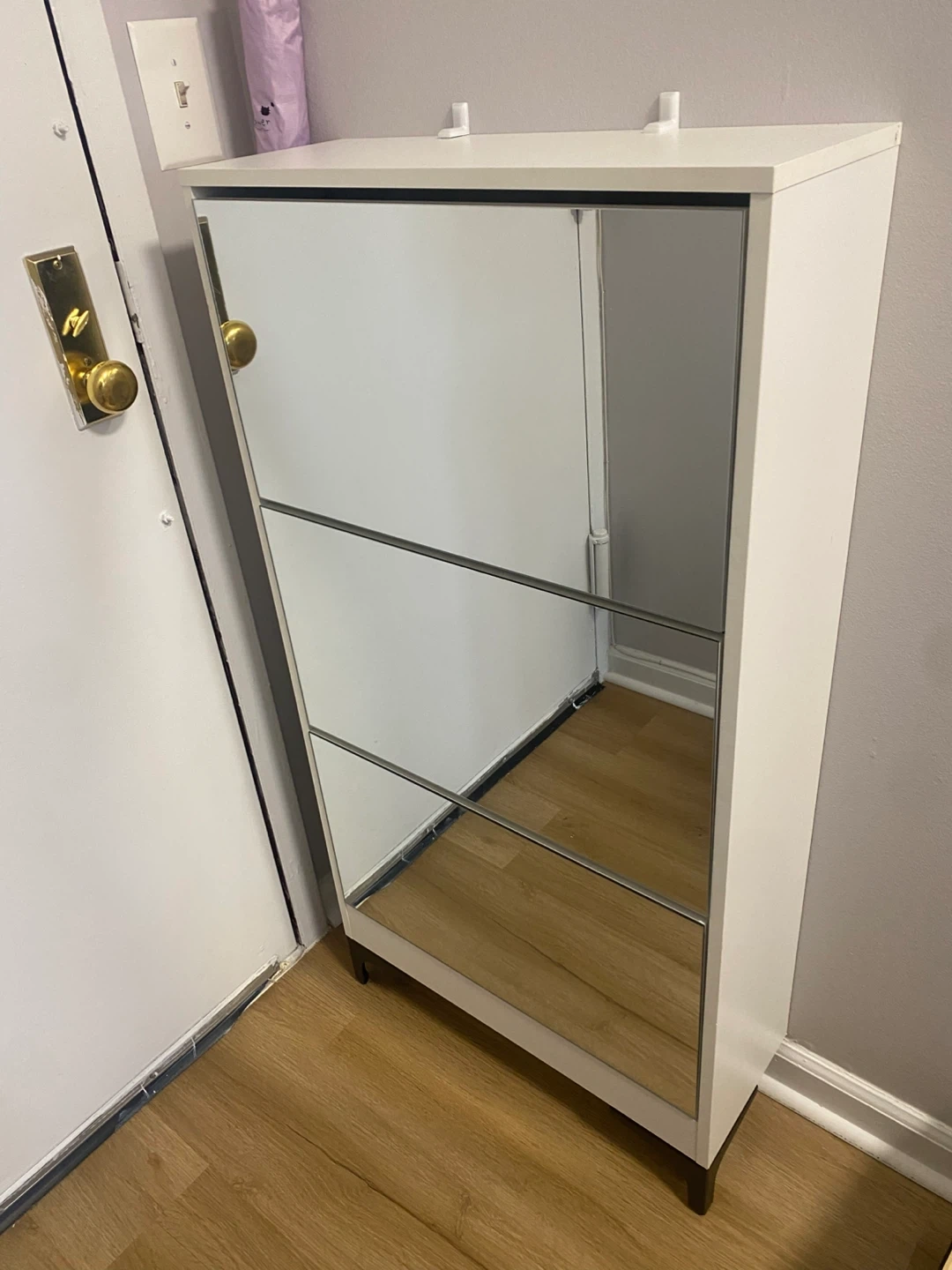White Mirrored Shoe Cabinet - 3 Tier
