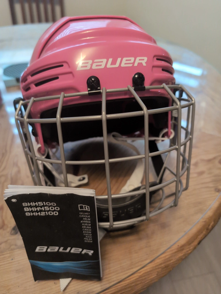 Pink Bauer Profile Junior hockey helmet with cage. Great condition, only used for skating lessons - selling due to growth.