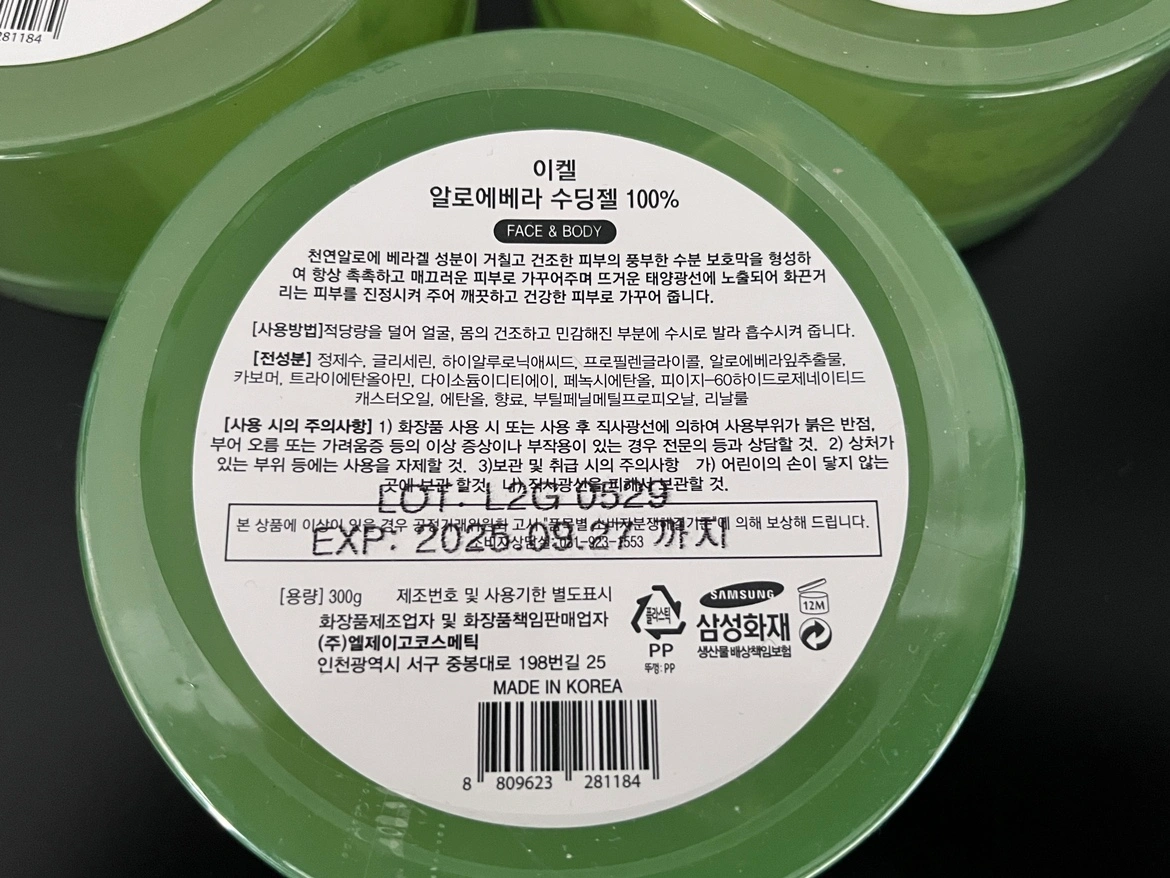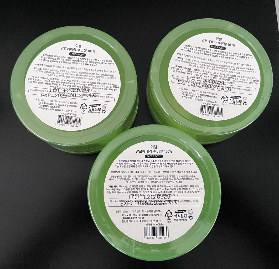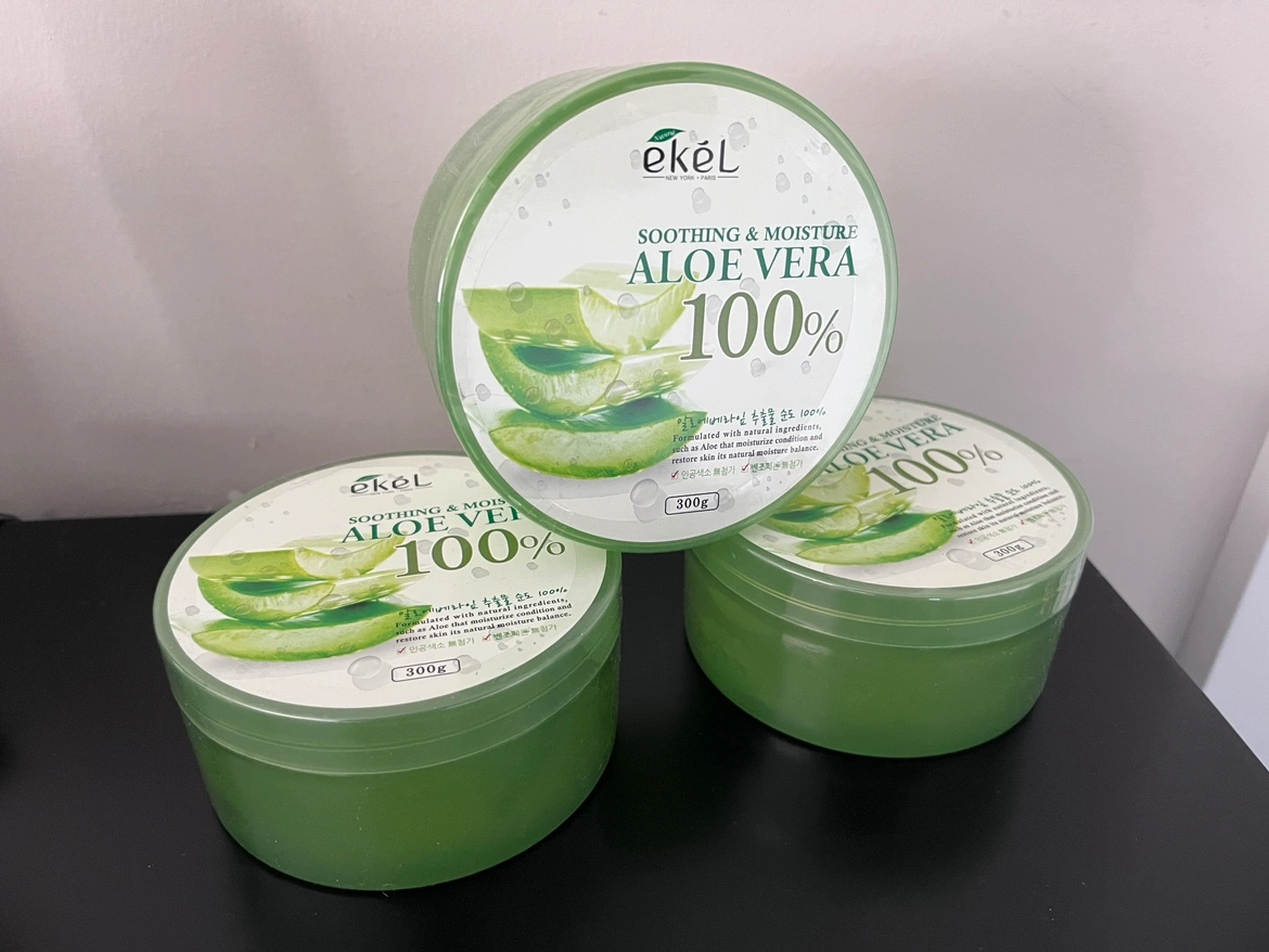 Three tubs of eKel Soothing & Moisture Aloe Vera 100% Gel. Each tub contains 300g of gel. Or $5 each.