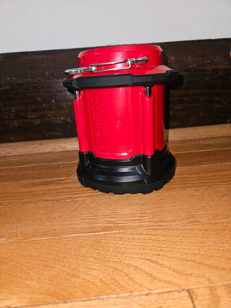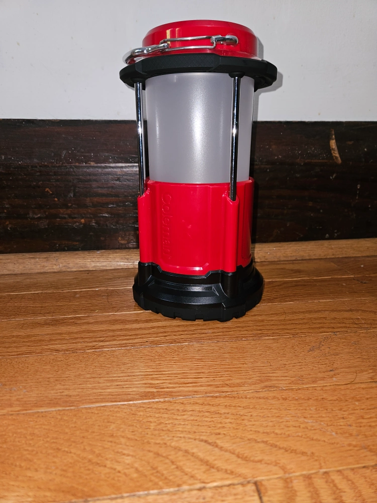 very bright Coleman led lantern with carabiner style handle for easy hanging