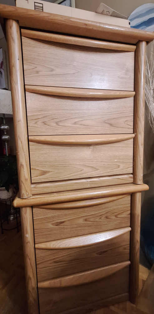 2 night stands (stacked on eachother in the image). 3 drawers each. Good condition. Plenty space for storage.