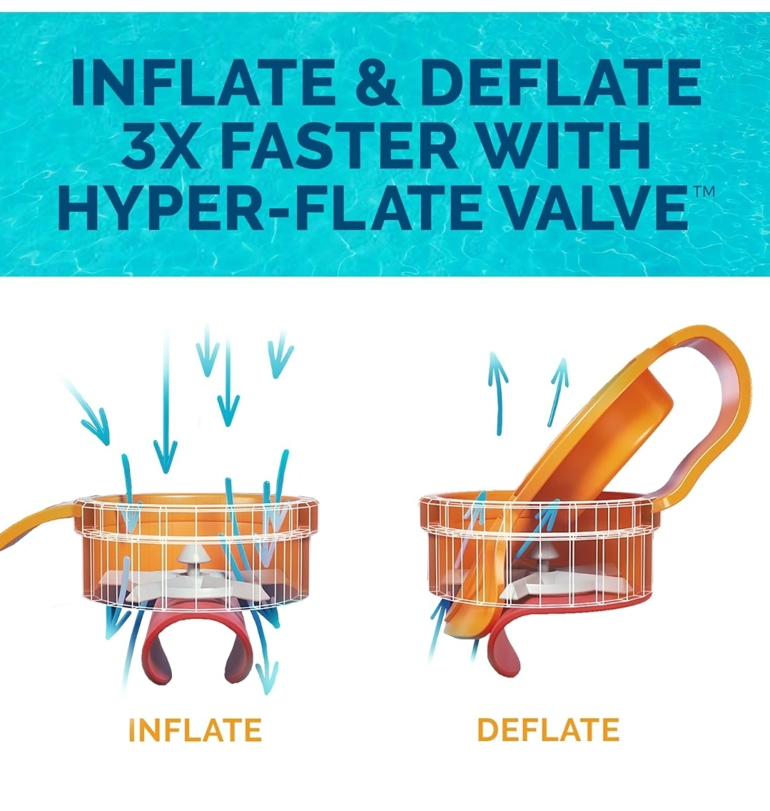 ULTRA FAST INFLATION: Pool toys with Hyper-Flate Valve maximize airflow for easy inflation in a fraction of the time, and the pump-free design prevents air from escaping for our fastest inflation ever