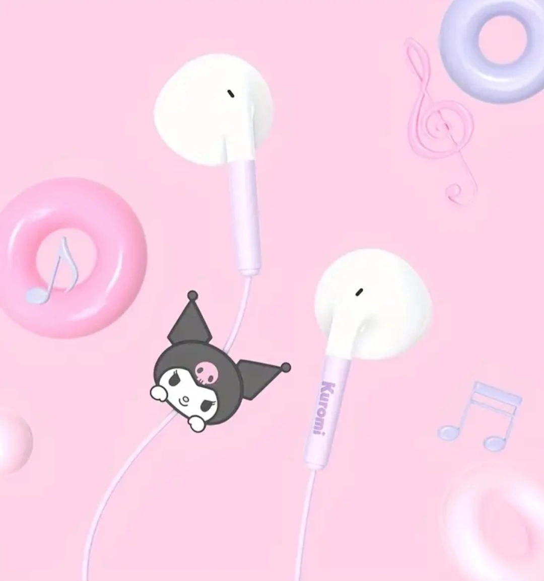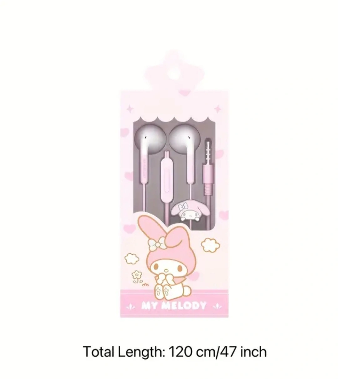 Kuromi Cinnamoroll Melody Cute Kawaii wire Earphones Wired Earbuds In-Ear Headphones 3 Styles Optional Smart Wire Control Comfortable To Wear Suitable For Boys and Girls