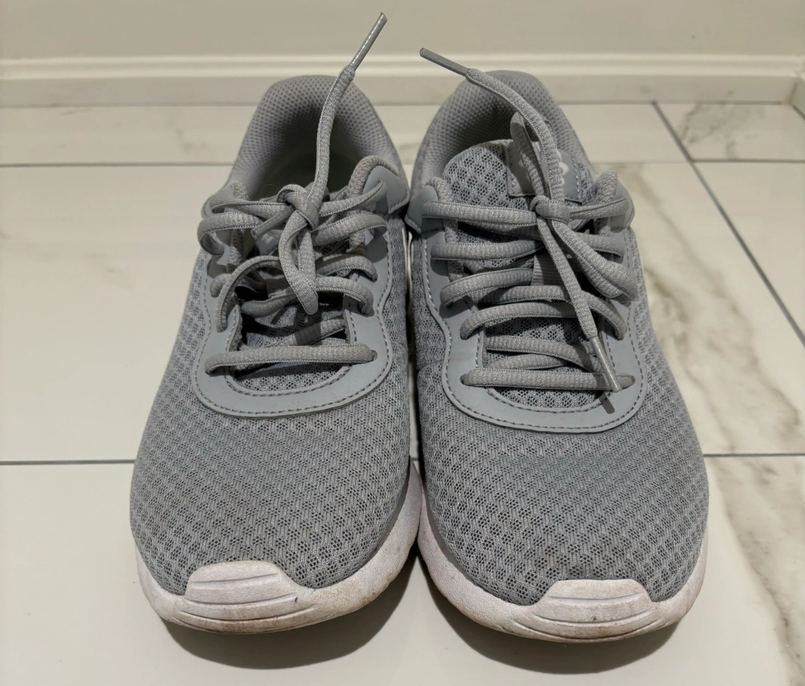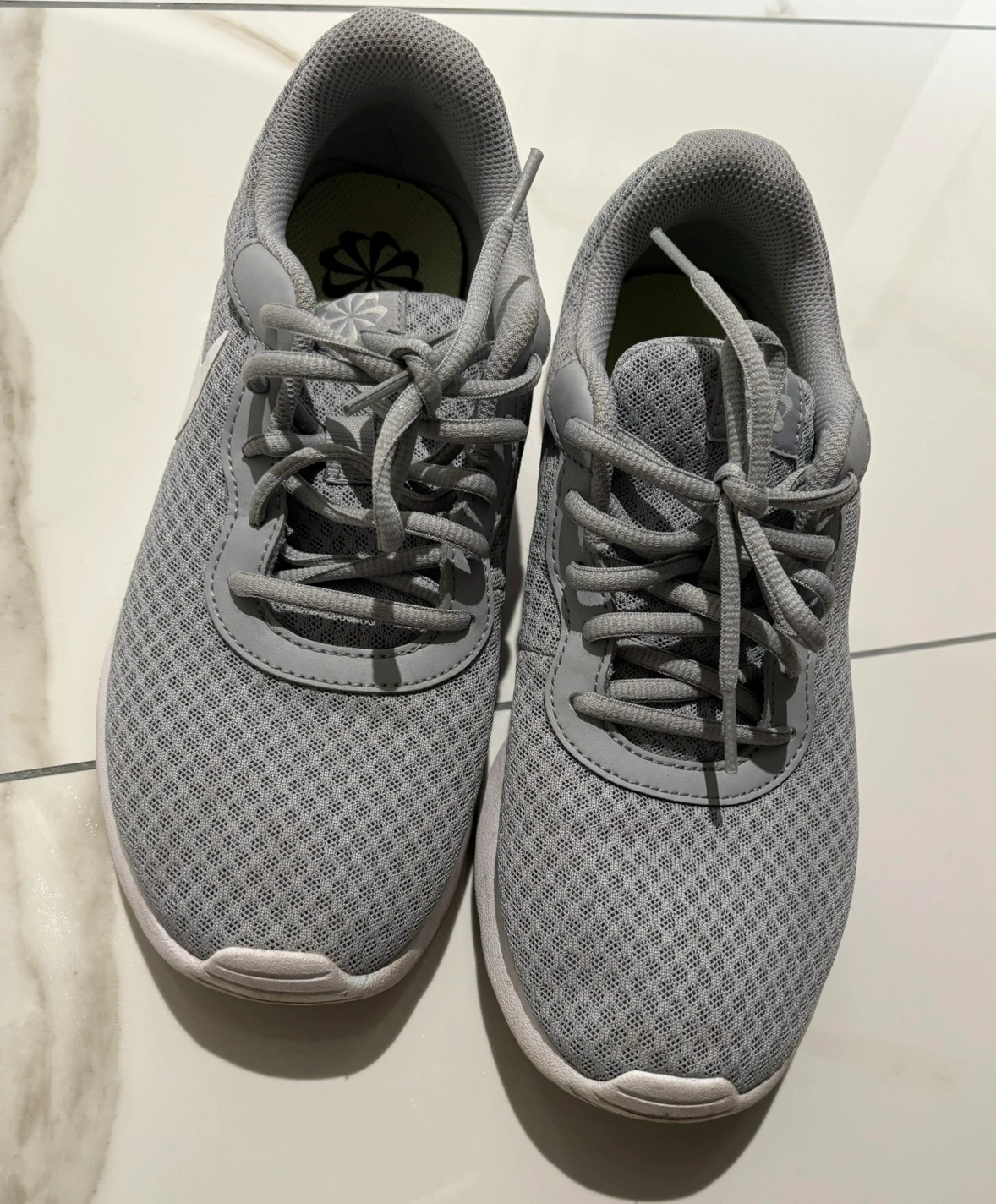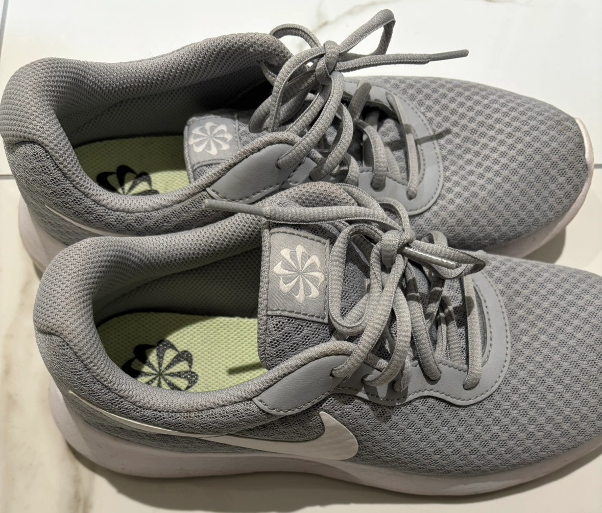 Grey Nike Tanjun running shoes.
