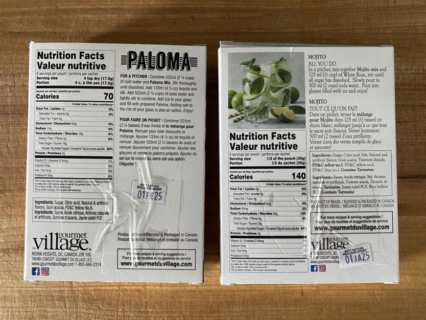 Gourmet Village Paloma and Mojito Cocktail Mixes