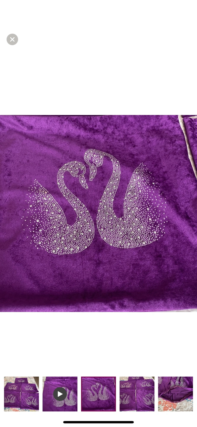 A set of 4 purple velvet pillow covers with a crystal swan design. They are a great way to add some glam to your home decor.