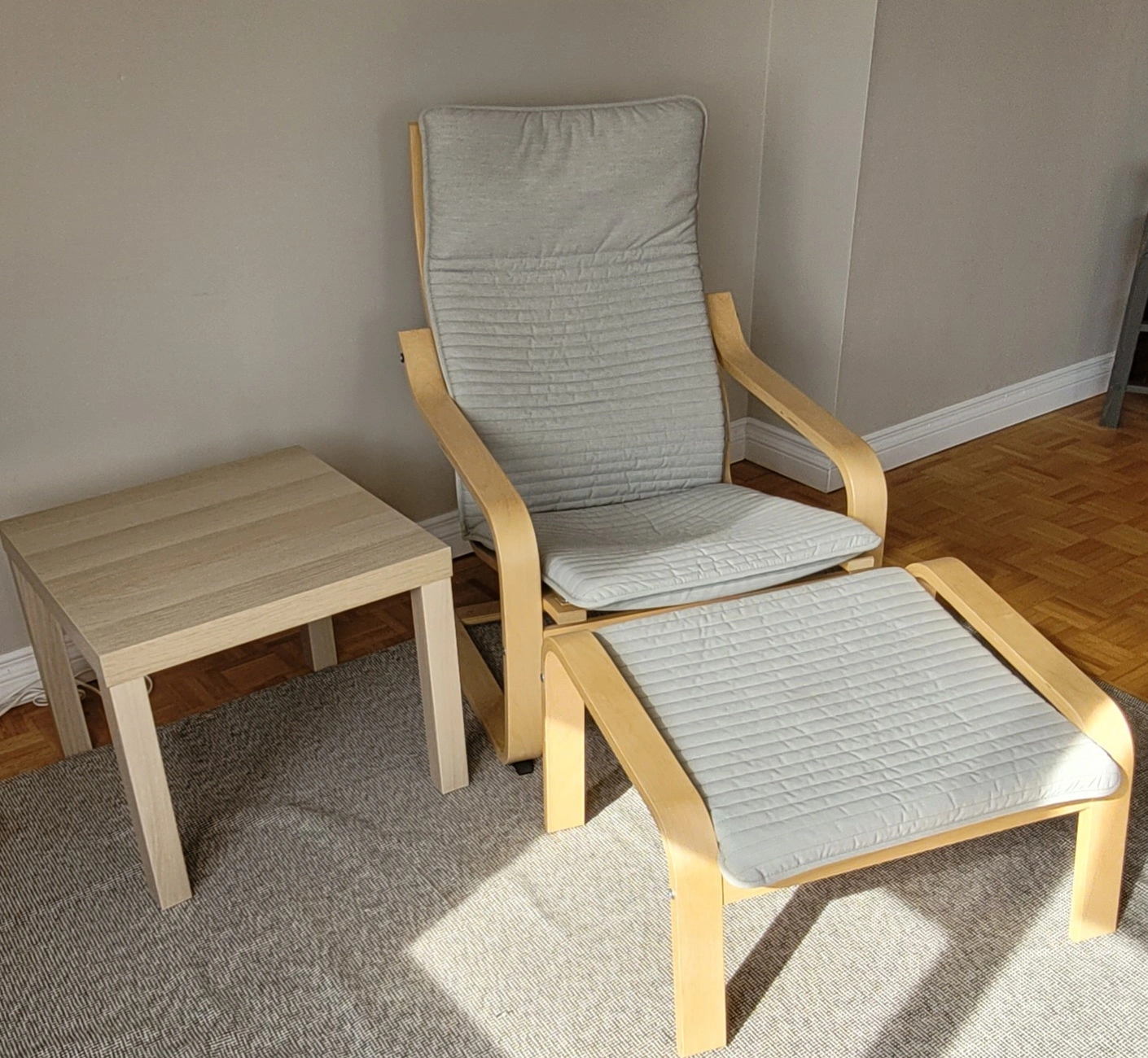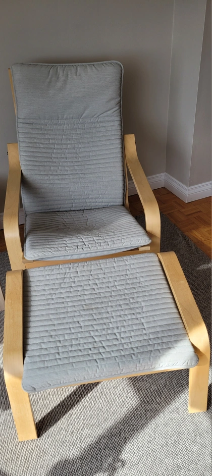 PRICE REDUCTION!!A comfortable and stylish armchair and ottoman set. The armchair is a classic design that is both modern and timeless. The ottoman is a great place to put your feet up or to use as extra seating. The set is in good condition and has been well looked after. OPEN TO REASONABLE OFFERS. MUST GO!