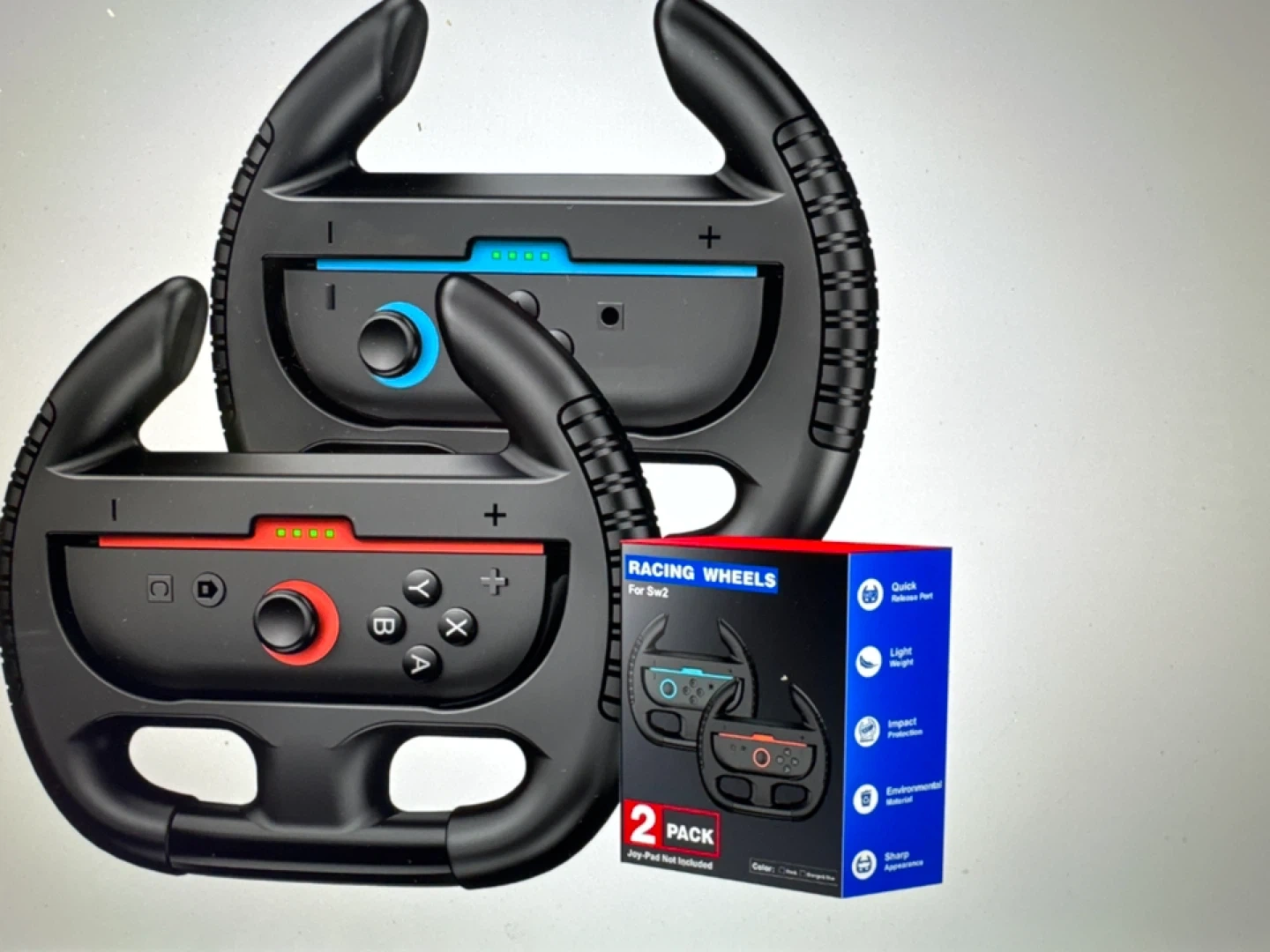 Racing wheels designed for Nintendo Switch 2. Includes a quick release port. Made with environmental material.