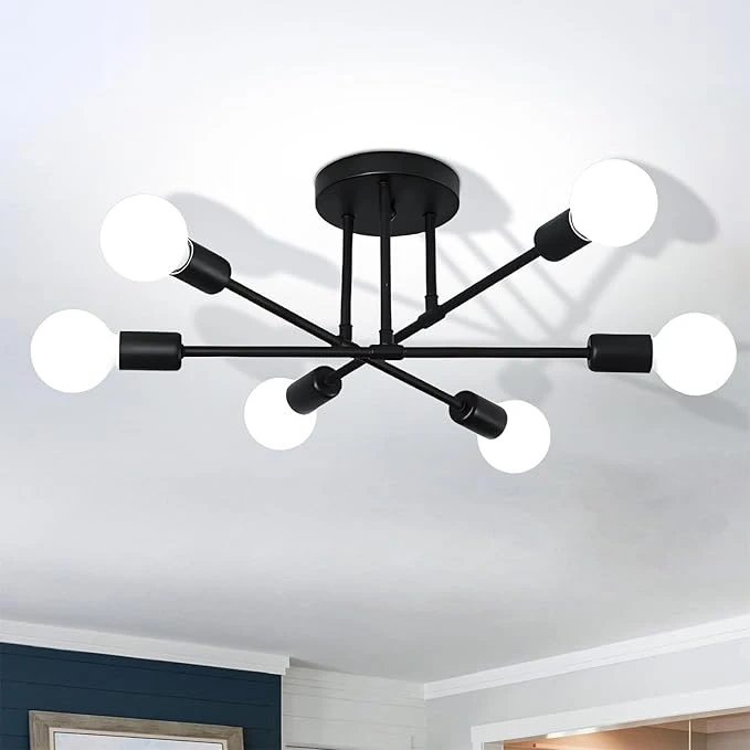 SPOLI Modern 6-Light Sputnik Flush Mount Ceiling Fixture - Black