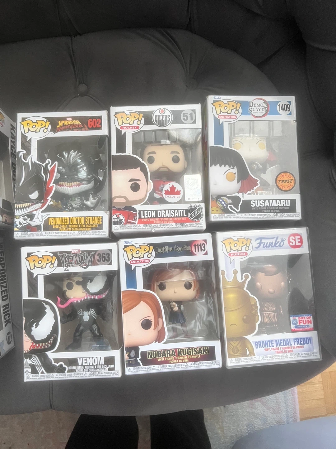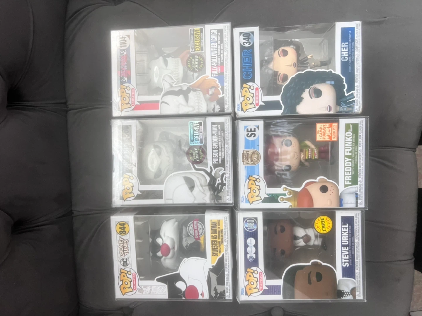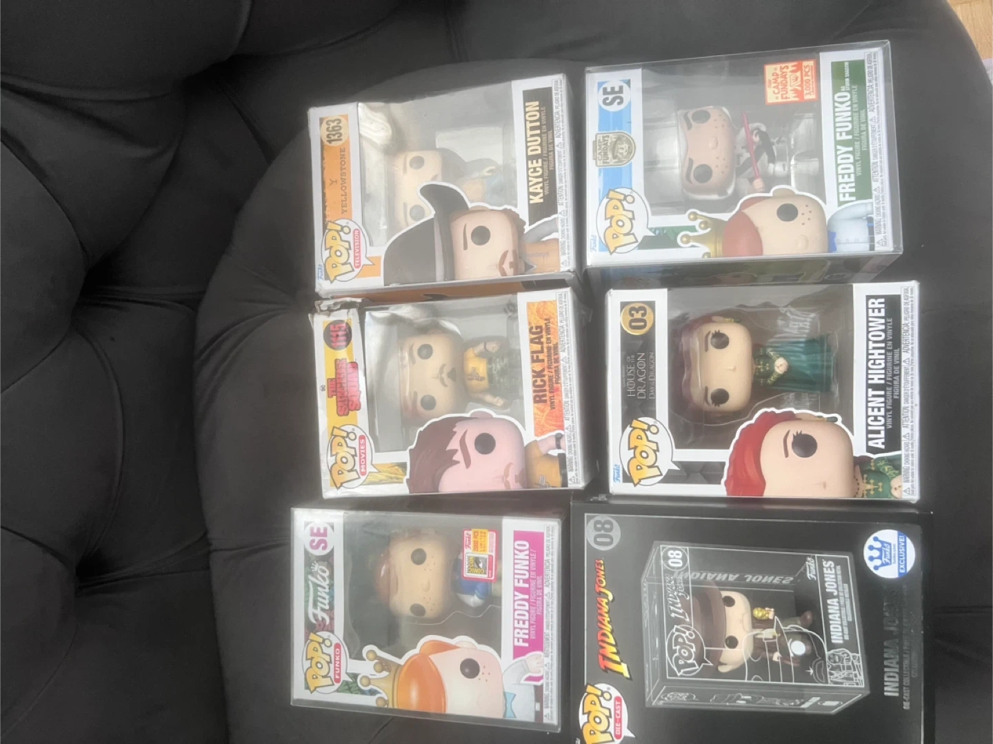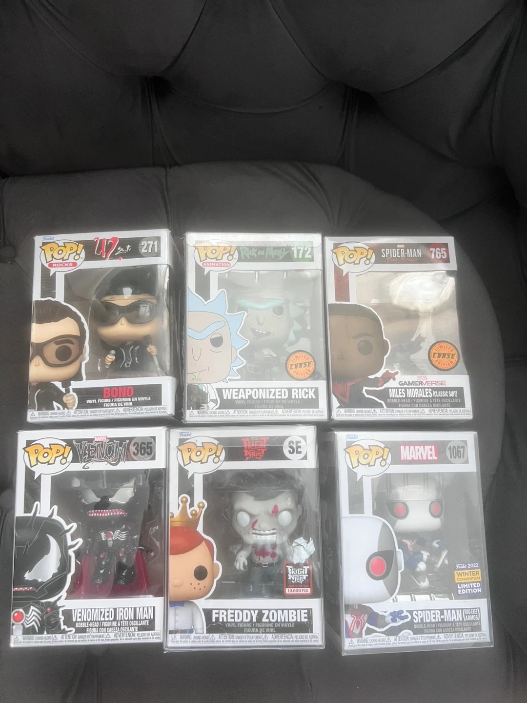 A collection of various Funko Pop! vinyl figures from popular franchises like Marvel, Rick and Morty, and more. Each figure is in its original packaging and ready to display. Great for collectors and fans!
