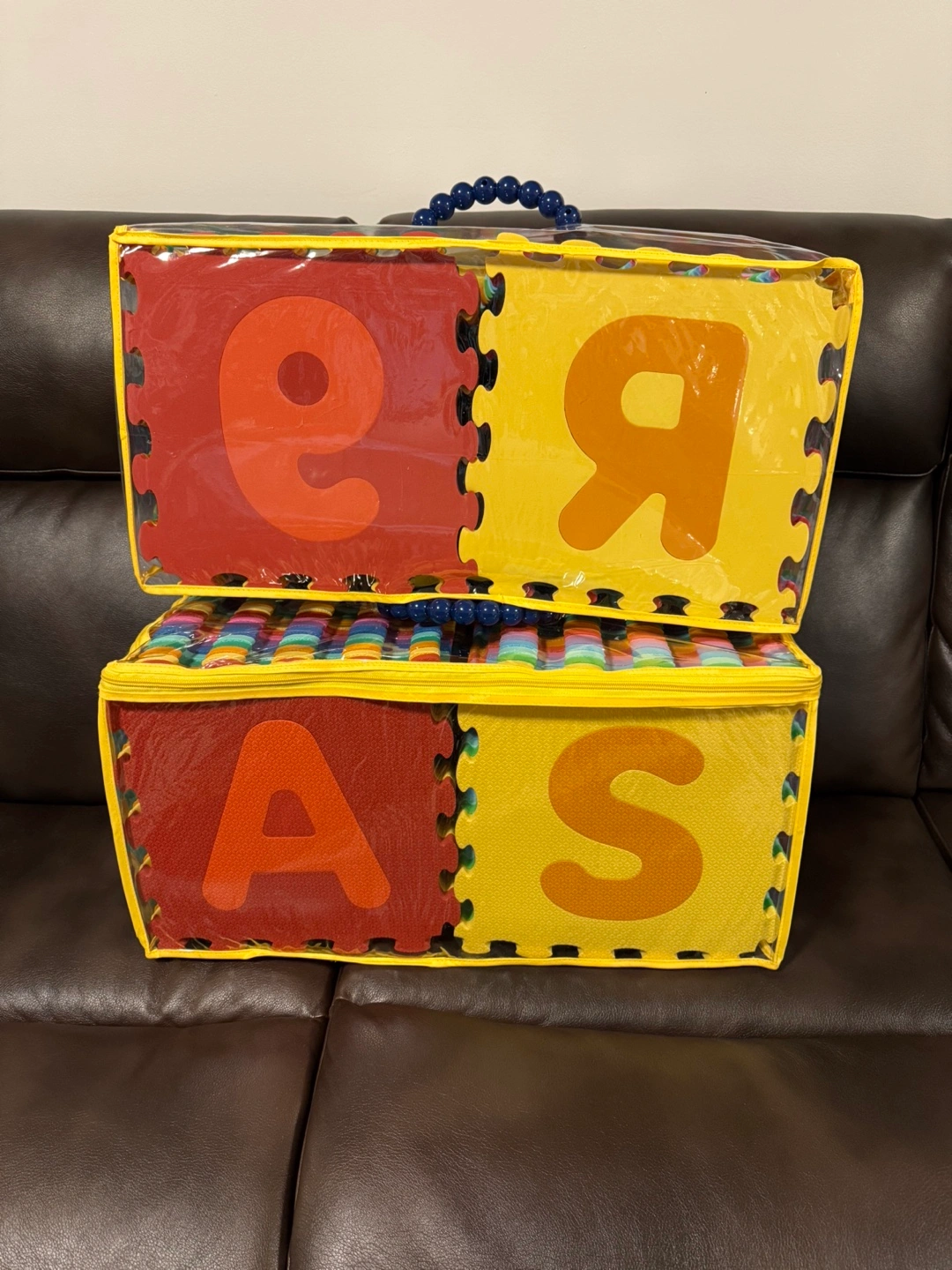 2 sets of Foam Puzzle Mat, Play Mat, Play Rug with Letters of The Alphabet and Numbers. 2 sets of (36x2=72 Tiles alphabet and number foam play mat. Great for kids. Comes with carrying case.