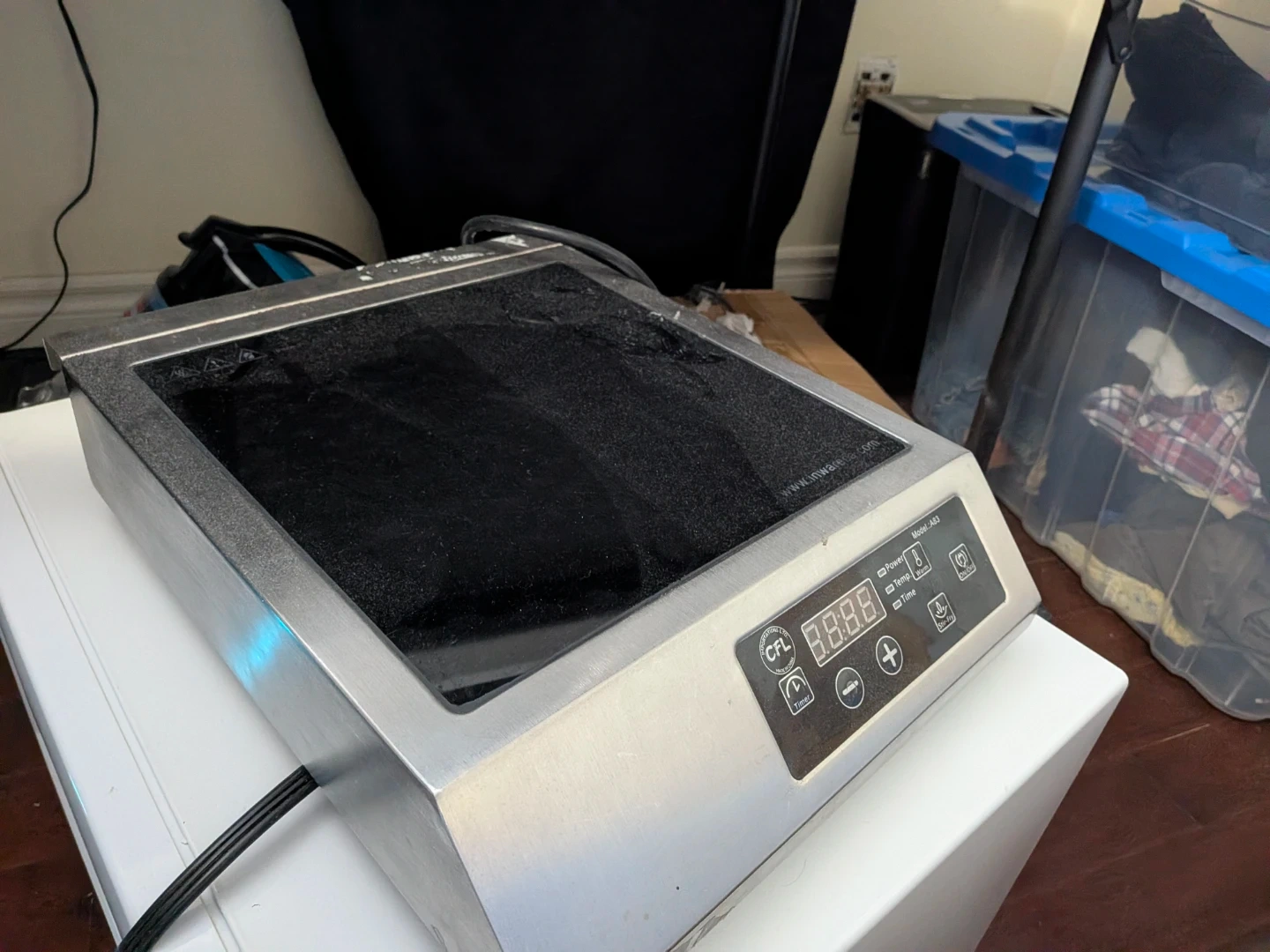 This is a portable induction cooktop. It features a digital display and touch controls for easy operation. Great for small kitchens or on-the-go cooking! Induction Cooker, 3500 WATT ETLus Version 240V