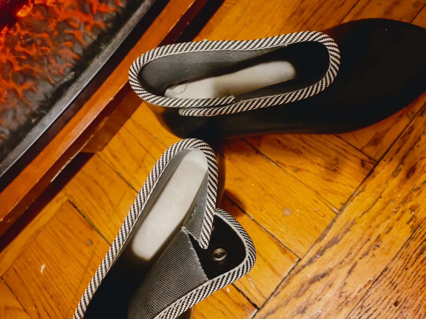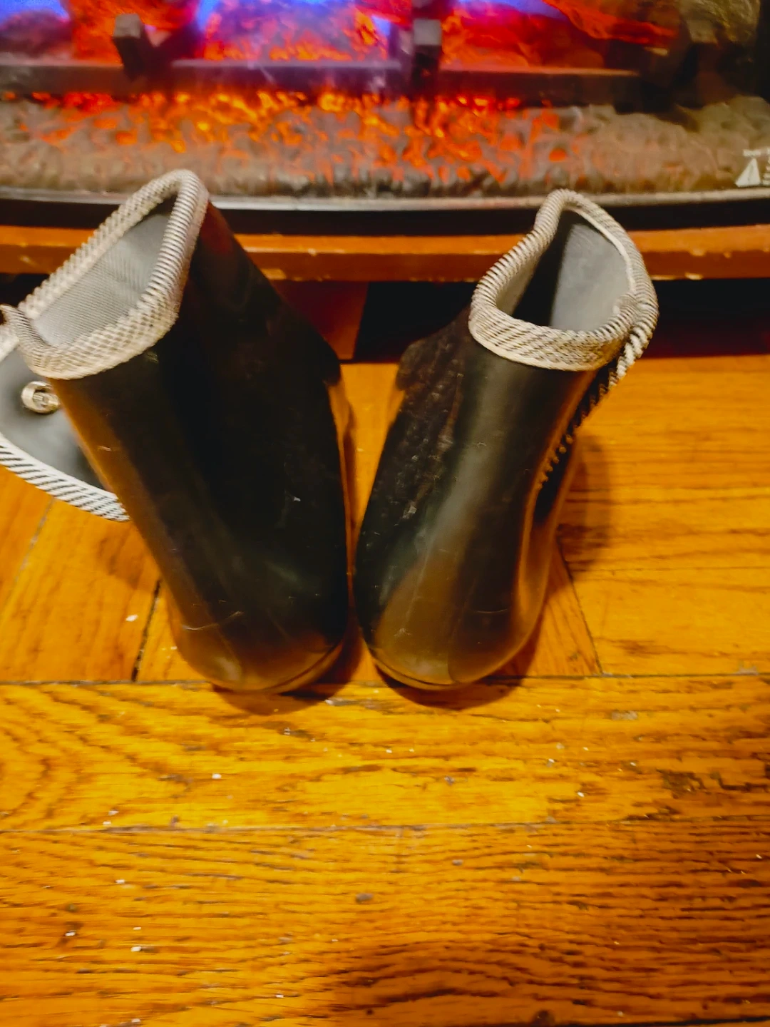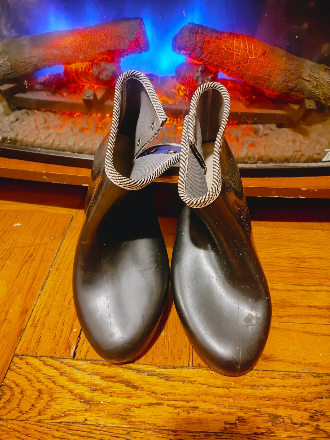 🏆 women Black Rubber Ankle Boots with Striped Trim size 8.5