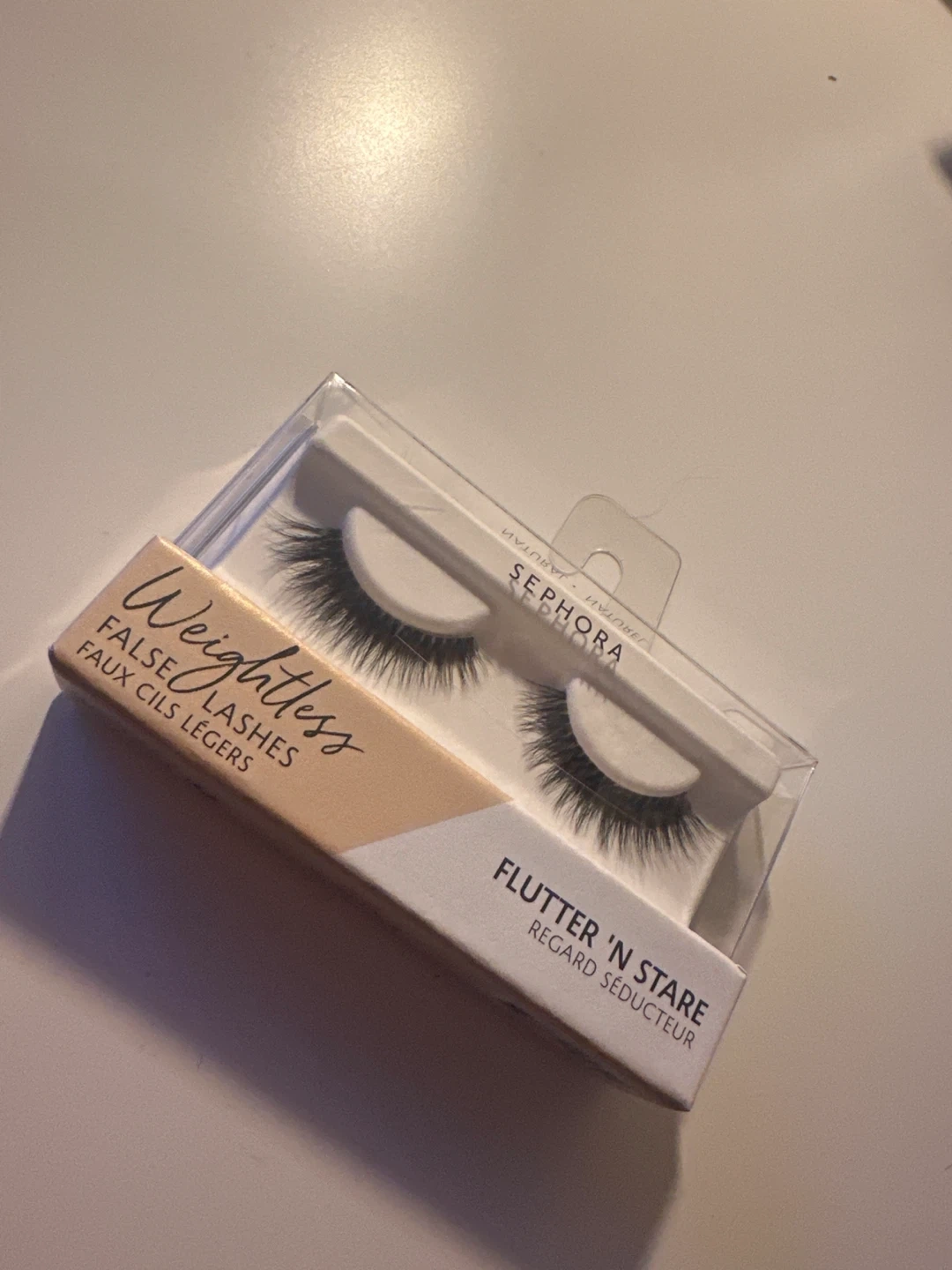 Brand new Sephora Collection false lashes in the 'Flutter 'N Stare' style. These are designed to be weightless for comfortable wear. Includes one pair of faux lashes.