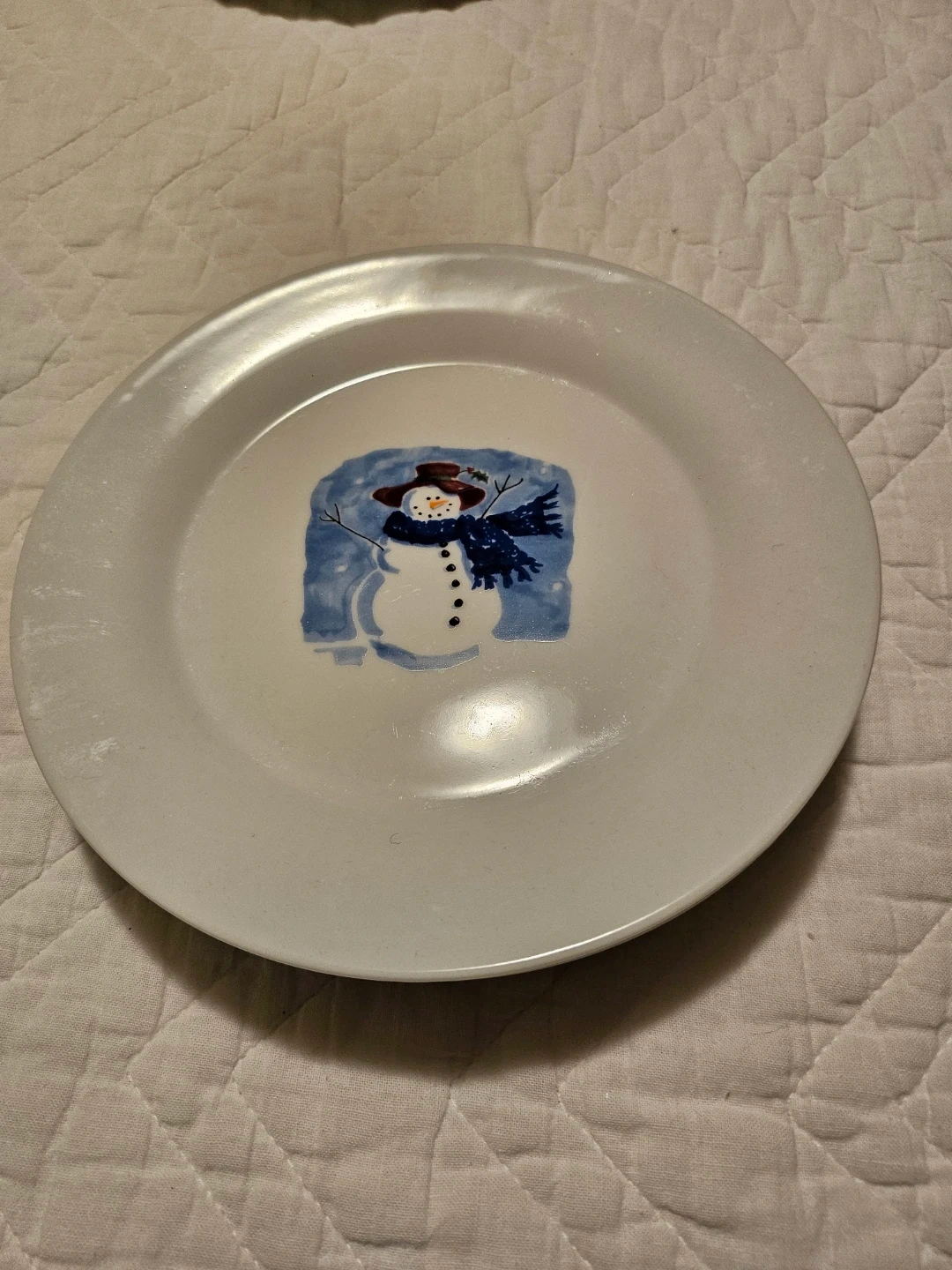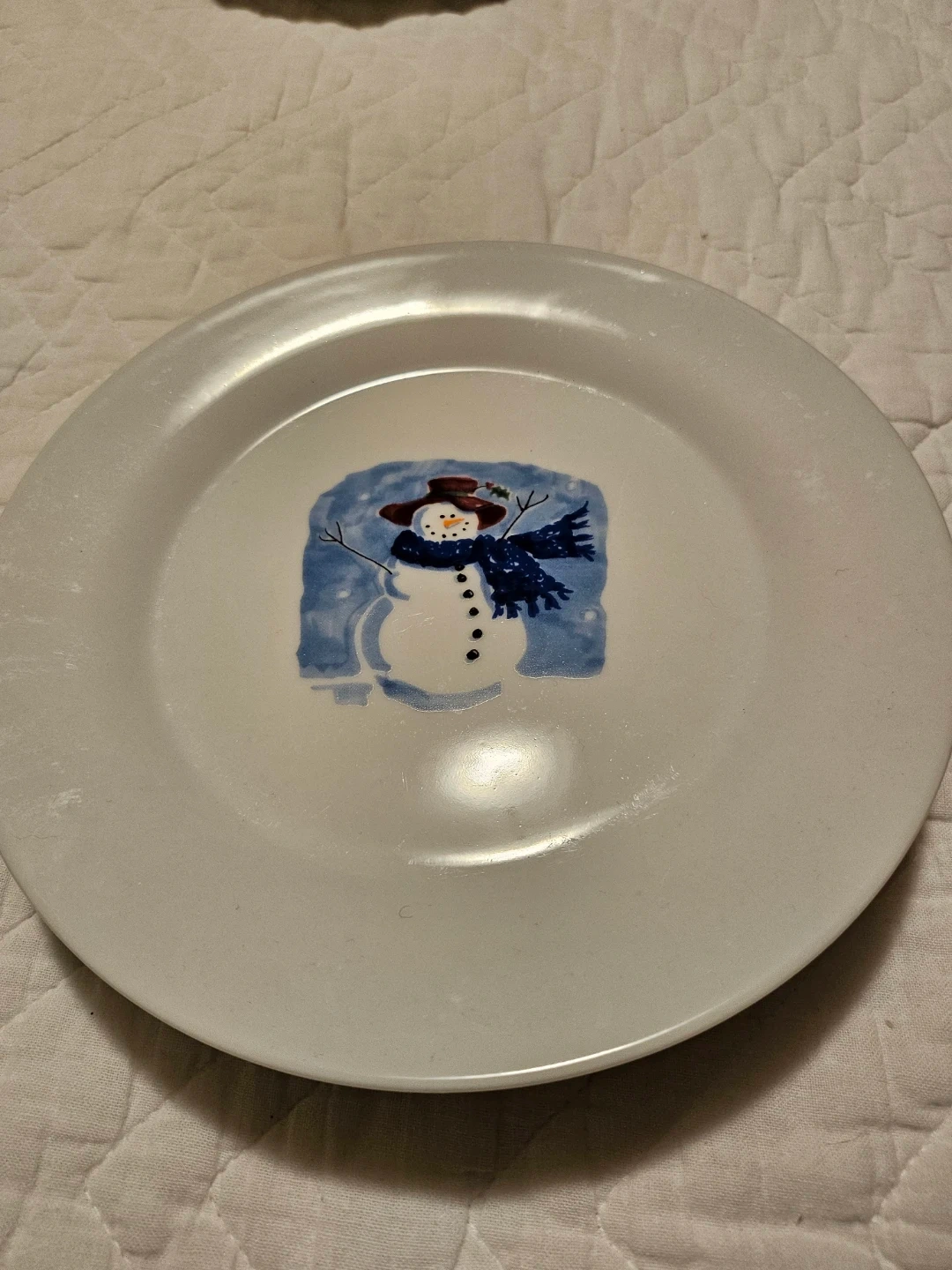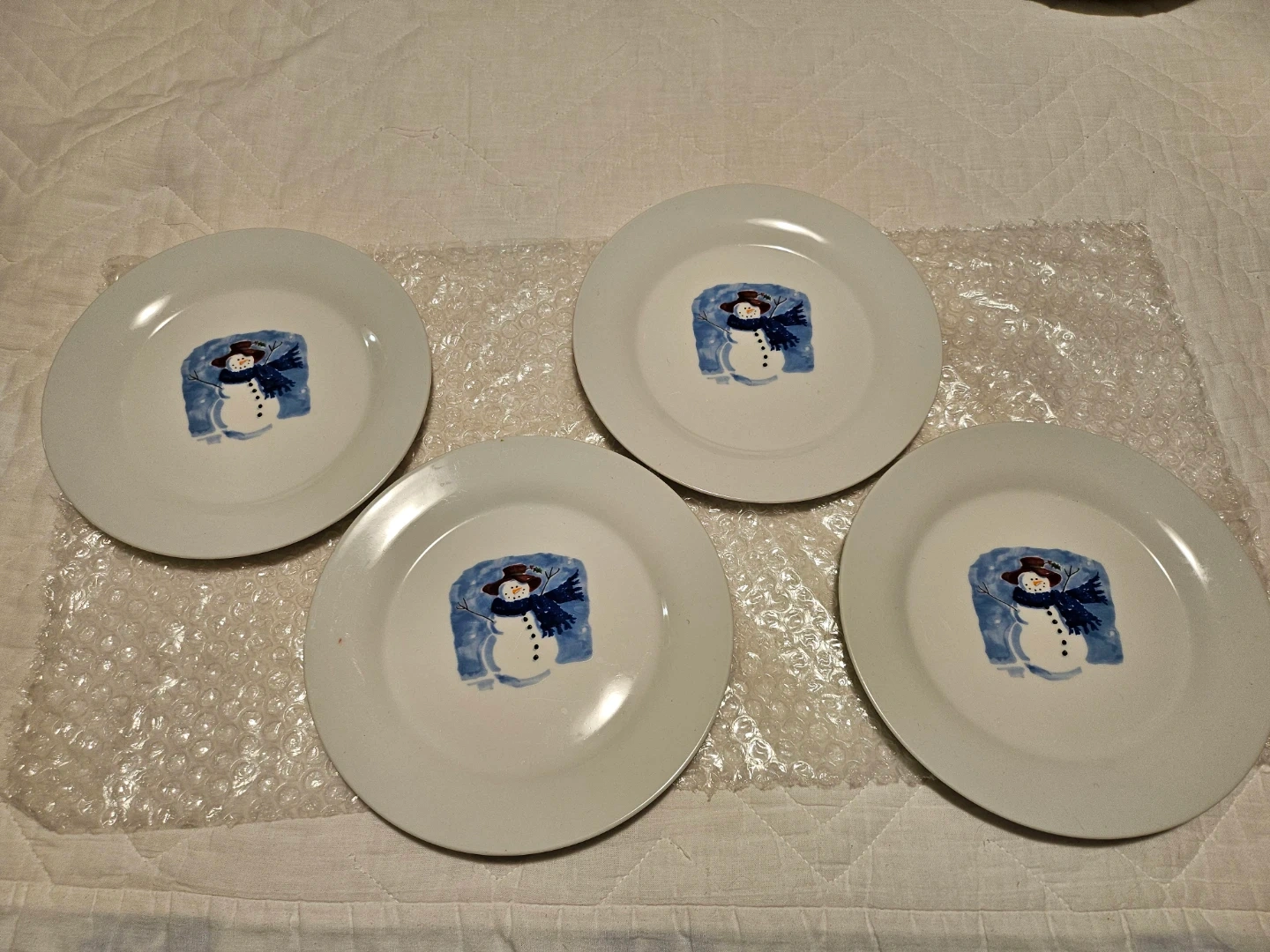 I have a set of four plates with a cute snowman design that I'm giving away for free! There are four plates in the set, and they're perfect for adding a touch of winter charm to your table setting.