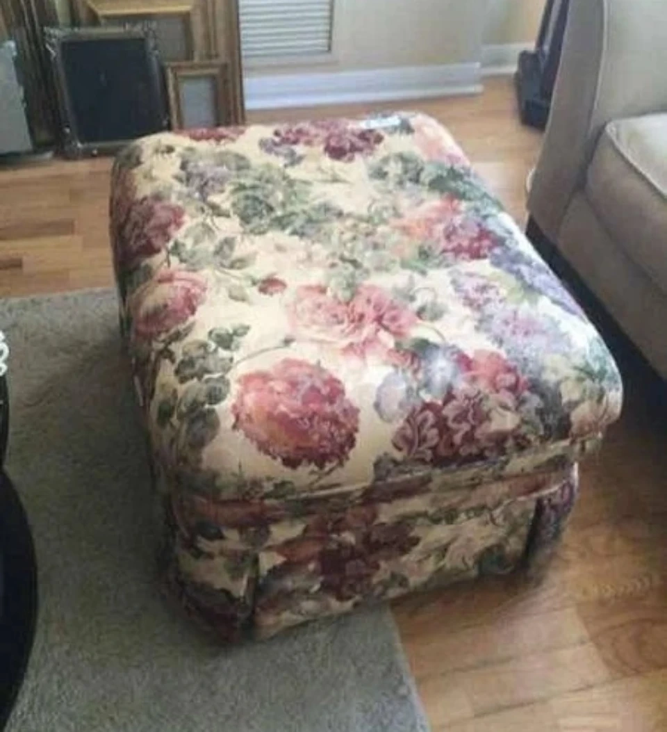 Selling a lovely floral ottoman! It's in great condition and would be a charming addition to any living room or bedroom. The floral pattern is quite unique and adds a touch of vintage style to your home decor