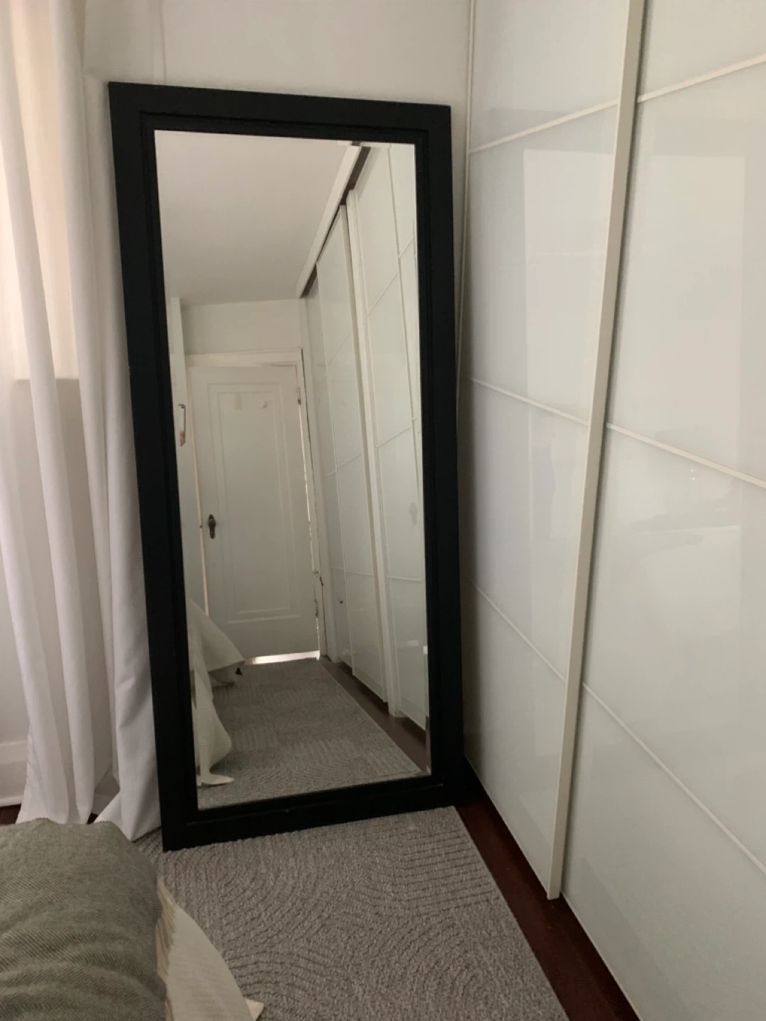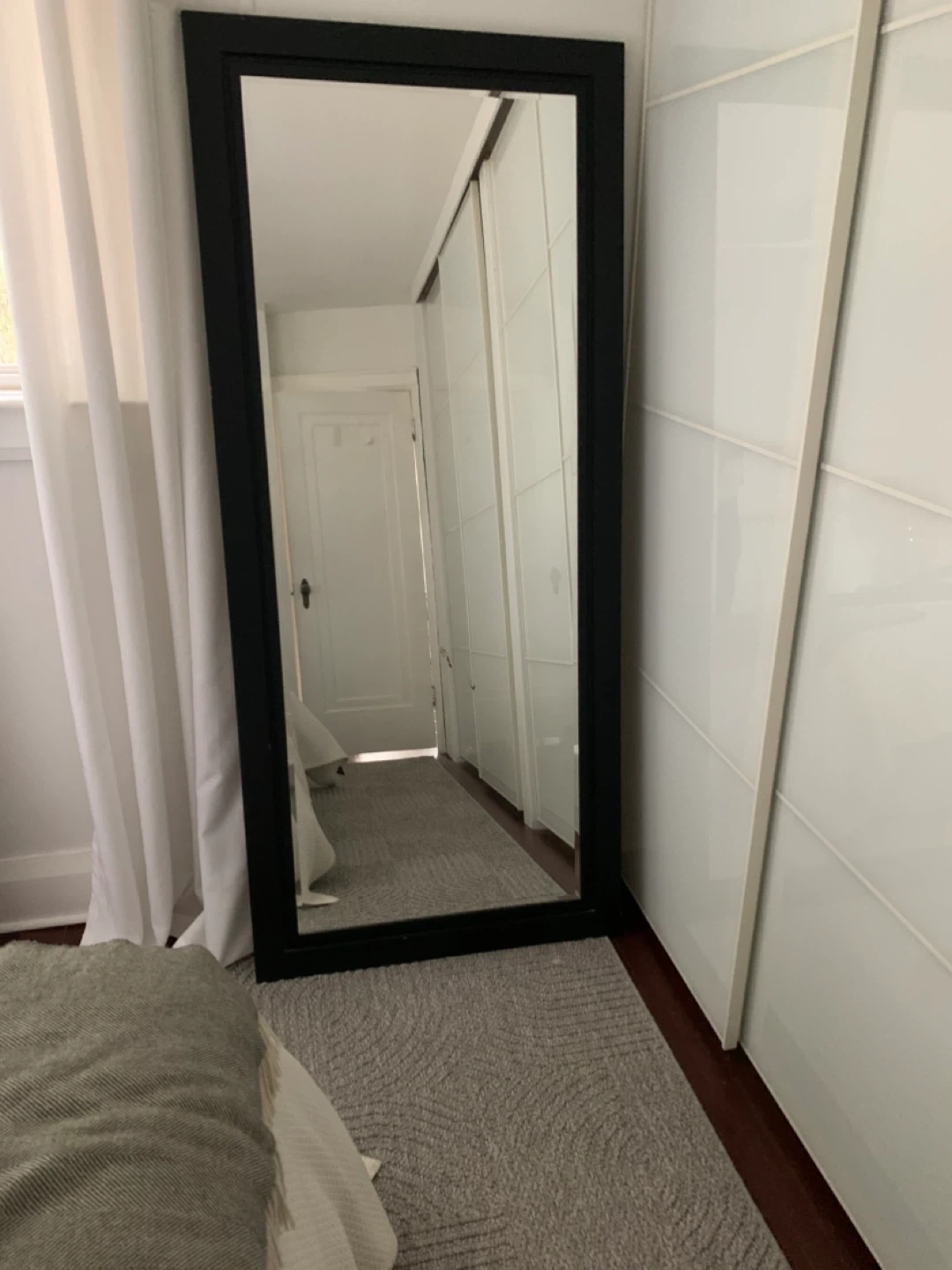full-length wall mirror with a sleek black frame. It's in great shape and ready to brighten up your space! The mirror has a small discolouration in it - see second photo.