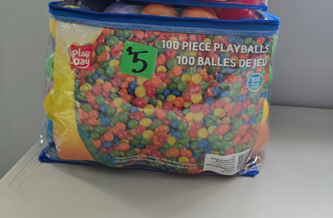 AI: Two bags of Play Day 100 Piece Play Balls are up for grabs! Each bag includes red, orange, yellow, blue, and green balls. Perfect for a ball pit or just some fun playtime!